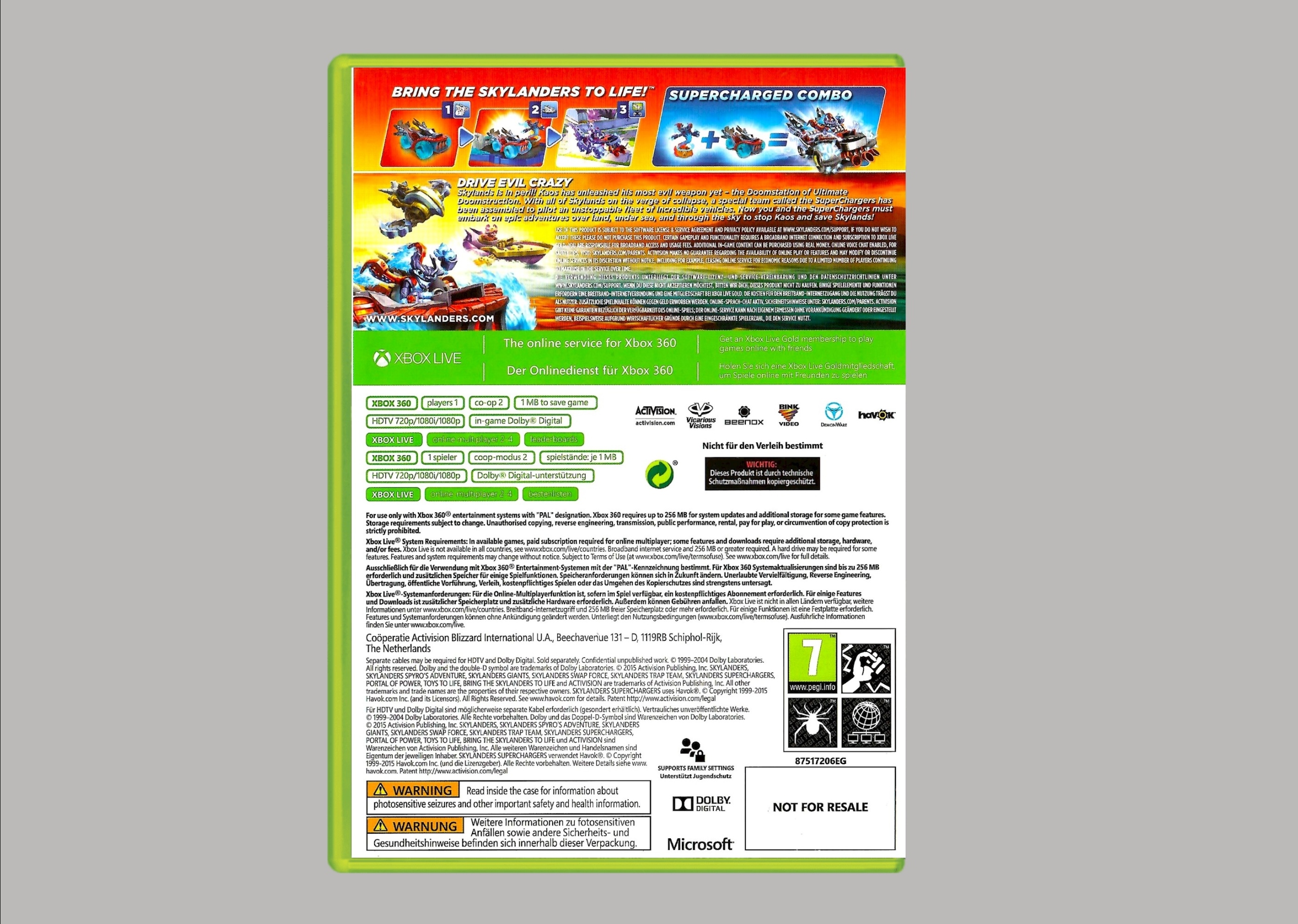 Оплачивая «игра для детей на XBOX 360 SKYLANDERS SUPERCHARGERS приключение на PORTAL», вы можете быть уверены, что данное изделие из каталога «'Игры' электронные» будет доставлено из Польши и проверено на целостность. В цене товара, указанной на сайте, учтена доставка из Польши. Внимание!!! Товары для Евросоюза, согласно законодательству стран Евросоюза, могут отличаться упаковкой или наполнением.