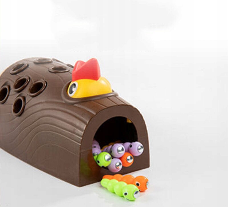 Спочатку дзьобом пташки-мами з магнітом на кінці вийміть хробаків із поліна, що імітує дерево, і точно помістіть його в дзьоб голодного курчати. p>
