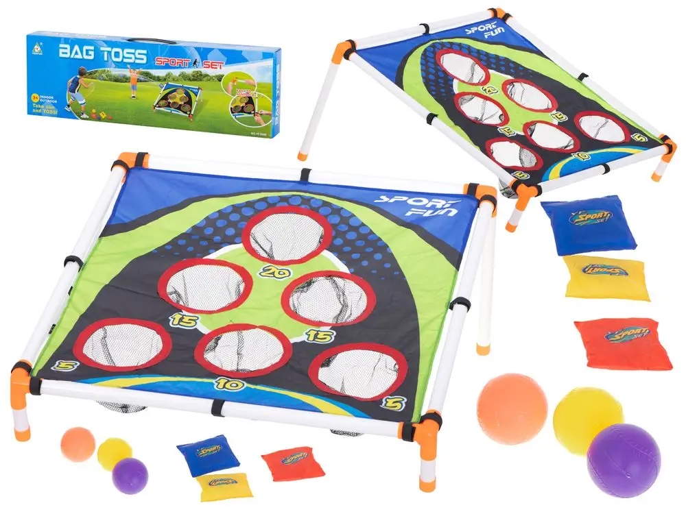❤️ У грі дитина (яка може стояти за визначеною лінією) цілиться в дірки на ігровому полі та кидає в них мішки. Окремі лунки позначені очками.