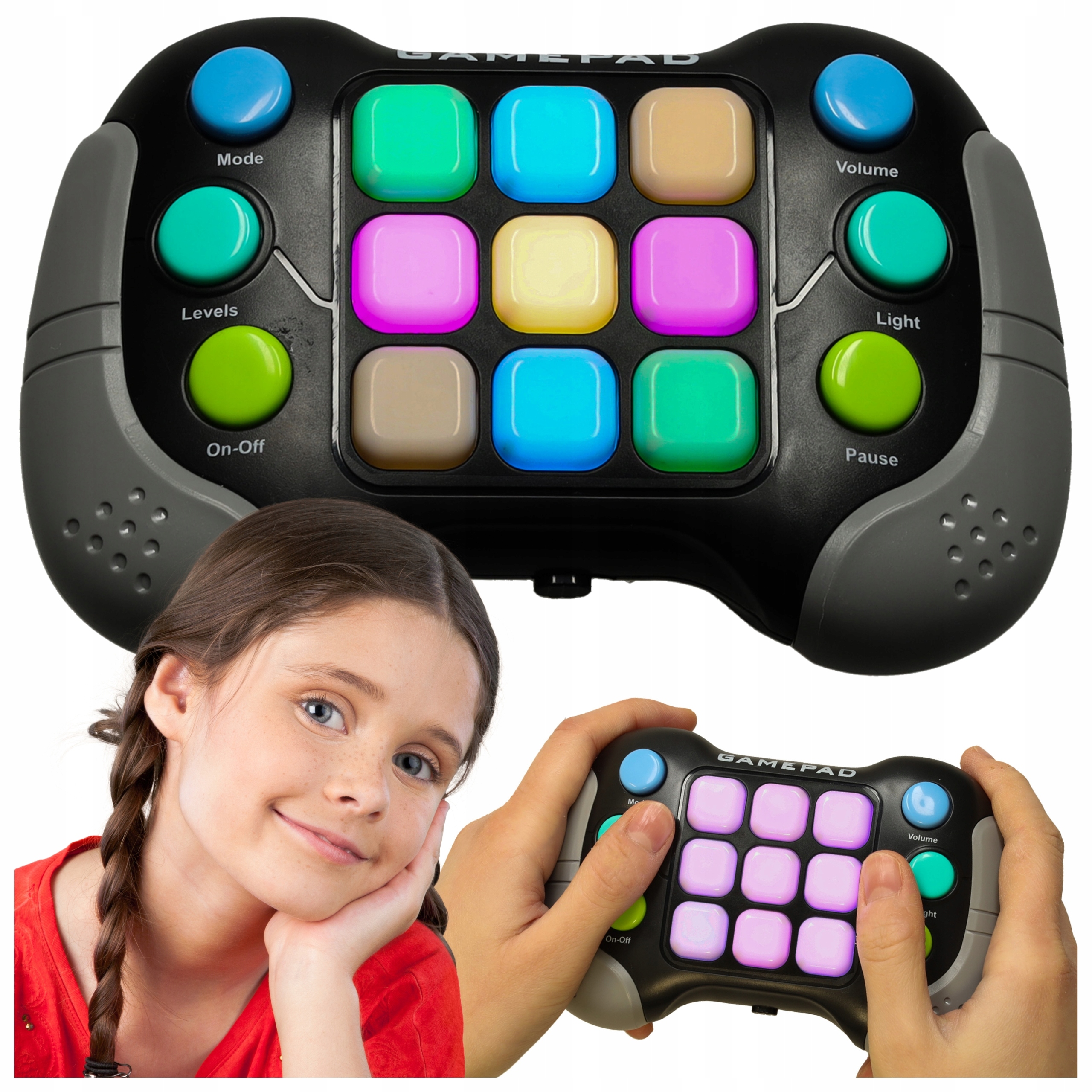 Гра пам'яті у вигляді зручної консолі - це захоплююча розвага, яка тренує рефлекси, пам'ять та концентрацію . Чотири режими гри забезпечують різні виклики - від натискання освітлених кнопок у правильному порядку для швидкого тестів. Ви можете вибрати 4 режими гри : whack-a-moole , пам'ять , швидкість та раси , завдяки якому всі знайдуть щось для себе. Інтерактивна форма та коригування гучності Зробіть задоволення пристосуватися до потреб гравця, пропонуючи захоплюючу спритність та координацію. 4 Компактний розмір та інтуїтивна послуга роблять його чудовим вибором для дітей віком від 6 років - а також чудовою пропозицією для гри разом з братами та сестрами