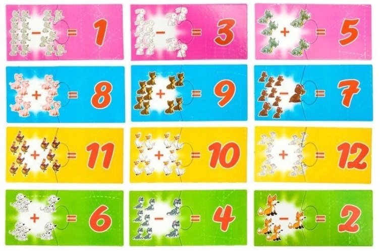 Гра PINS Додавання та віднімання — ідеальна головоломка для кожного дошкільника. Він ідеально поєднує в собі навчання з розвагою. Математика ще ніколи не була такою веселою! Поєднуючи окремі елементи, діти складають шматочки пазла. Гра полягає в комбінуванні головоломки із зображенням тварин з математичною операцією та головоломки з числом, яке представляє результат цієї операції.