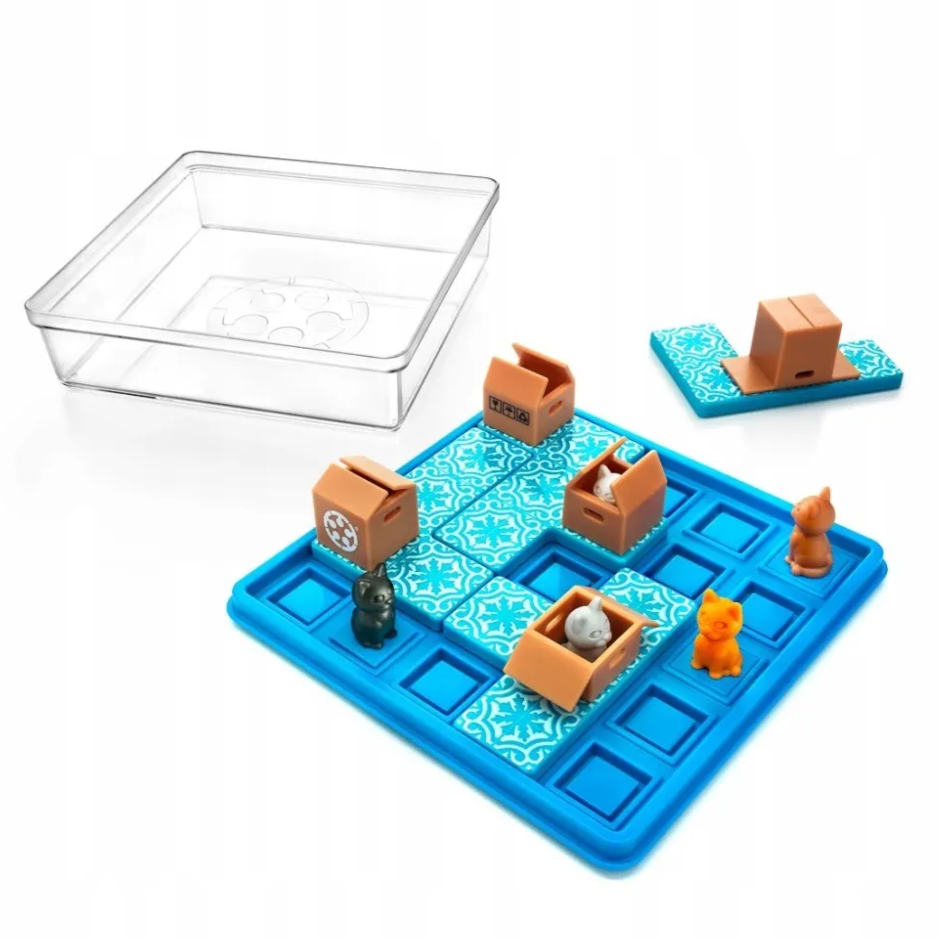 Кожен кіт мріє мати власну картонну коробку, в якій він зможе нескінченно гратися! Розташуйте частини відповідно до вибраного вами завдання. Переміщуйте елементи головоломки знову і знову, доки всі коти не опиниться в коробках.