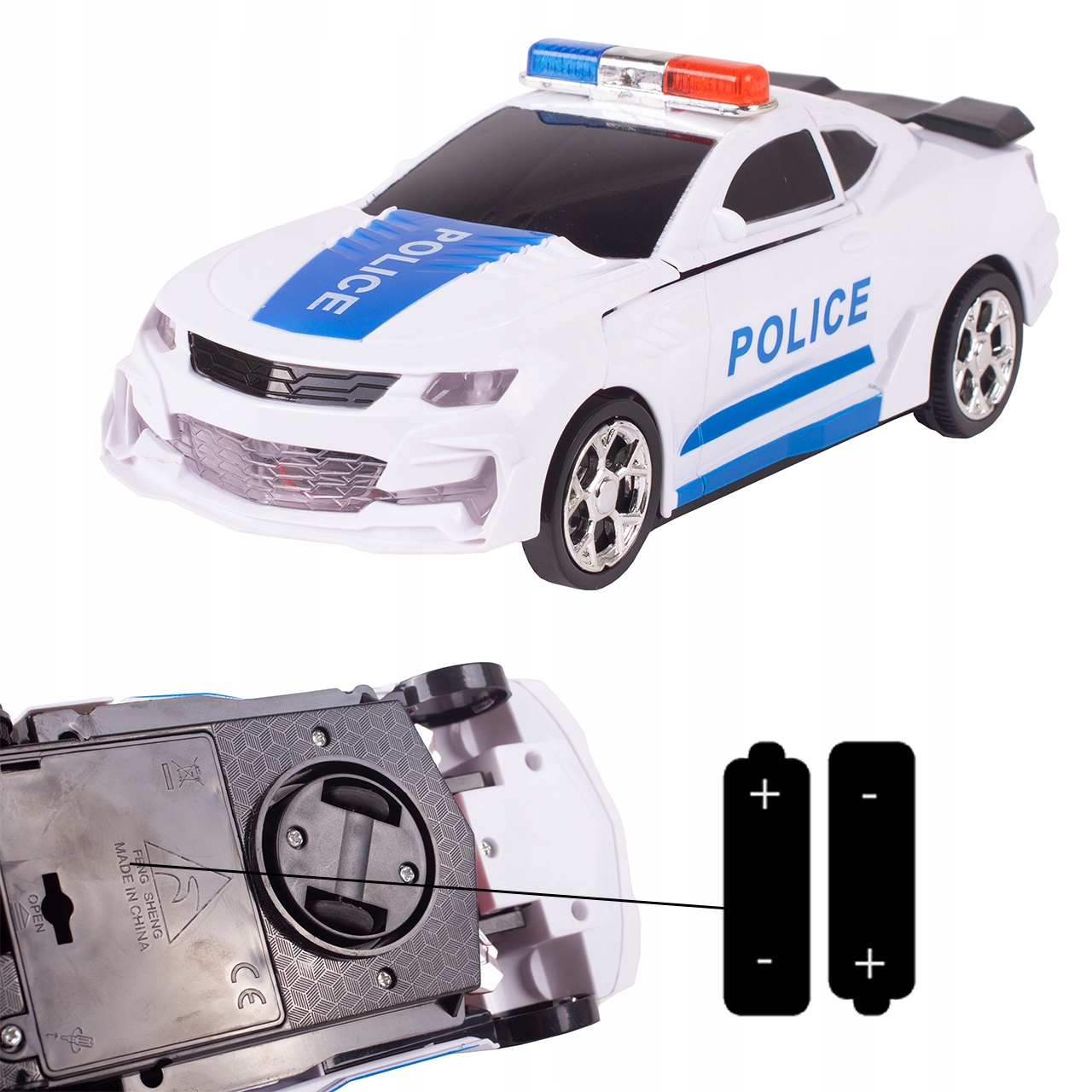 Крім того, автомобіль обертається навколо власної осі, і коли на своєму шляху зустрічає перешкоду, відскакує від неї та продовжує рух. Великою перевагою цієї іграшки також є вбудовані 3D-ліхтарі, які яскраво освітлюють поліцейську машину спереду та ззаду.