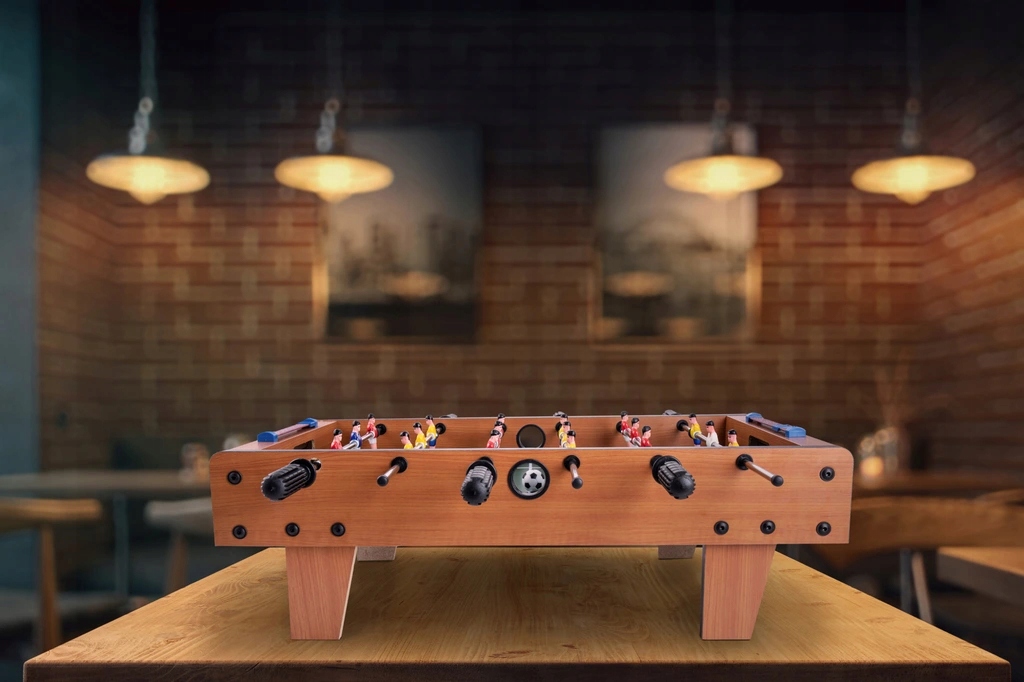Настільний футбол — чудова розвага для вашого дому! Футбольний стіл має міцні напрямні та м'які пластикові ручки, які запобігають ковзанню під час гри.