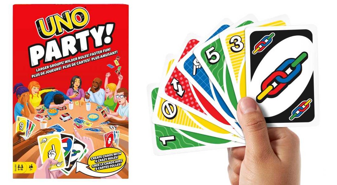 Зберіть усіх, хто грає в вечірці UNO ™. Він відтворюється так само, як і в добре відомою та сподобалася класичній грі UNO®, за винятком декількох спеціальних карт та правил, створених для більш великих груп, щоб розпочати кожну подію. Ця версія включає правила, які замовляють гравців для передачі карт, поки хтось не зможе продовжувати грати, що дозволяє вказати, хто повинен вибрати картки, та підключити кілька гравців, яким потрібно одночасно вибирати картки. Є навіть швидка гра. Розроблений для 6–16 гравців з 7 років, вечірка UNO ™ чудово підходить для вечора ігор з родиною чи друзями.