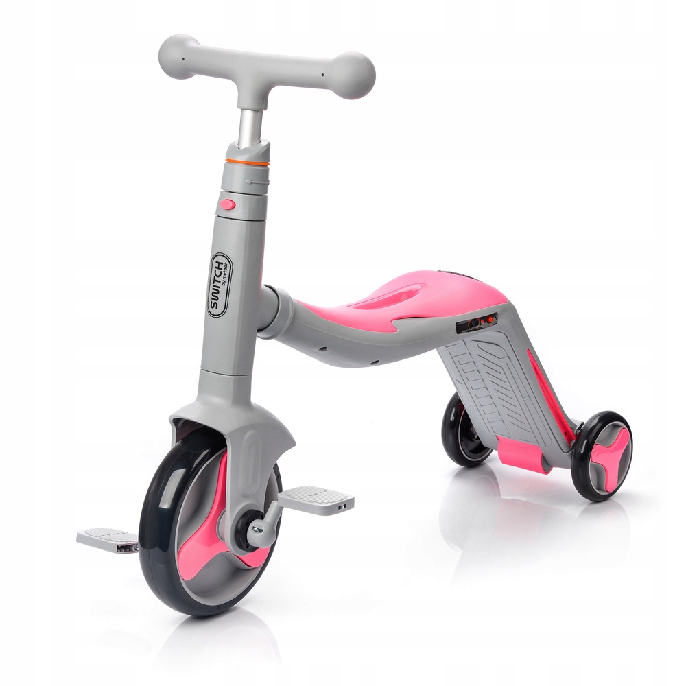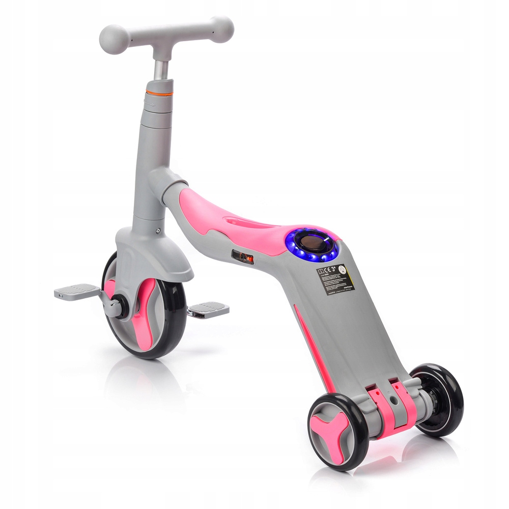 Багатофункціональний автомобіль 3 в 1 для дітей, який поєднує в собі самокат, звичайний велосипед і велосипед-балансир. Швидким і ефективним способом, без використання інструментів, ви можете перетворити обладнання на один із трьох різних транспортних засобів. Регульоване та поворотне кермо дозволяє підлаштувати самокат під зріст дитини та безпечно змінювати напрямок руху. Два задні колеса з регульованою колісною базою гарантують хорошу стійкість під час руху.