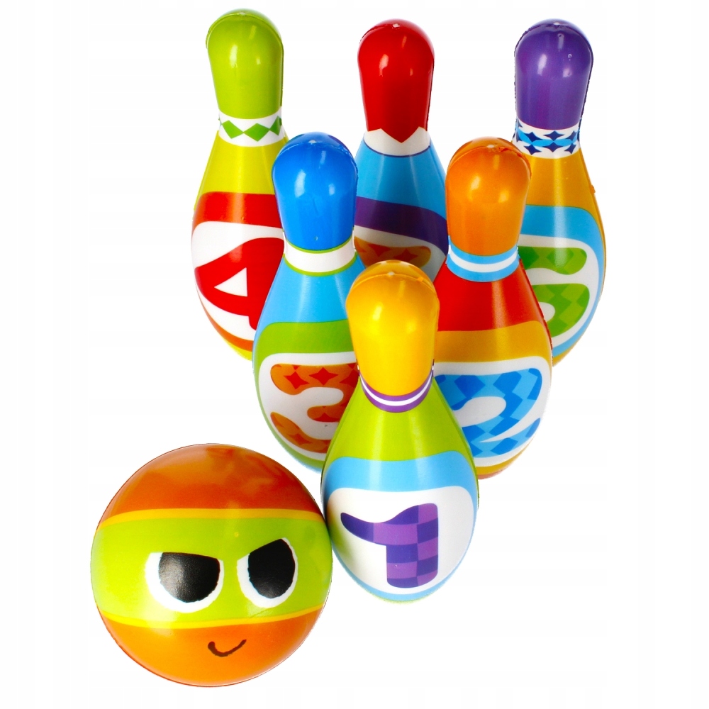 Вміст набору: 6 м’яких кеглів для боулінгу, 1 м’який м’яч.