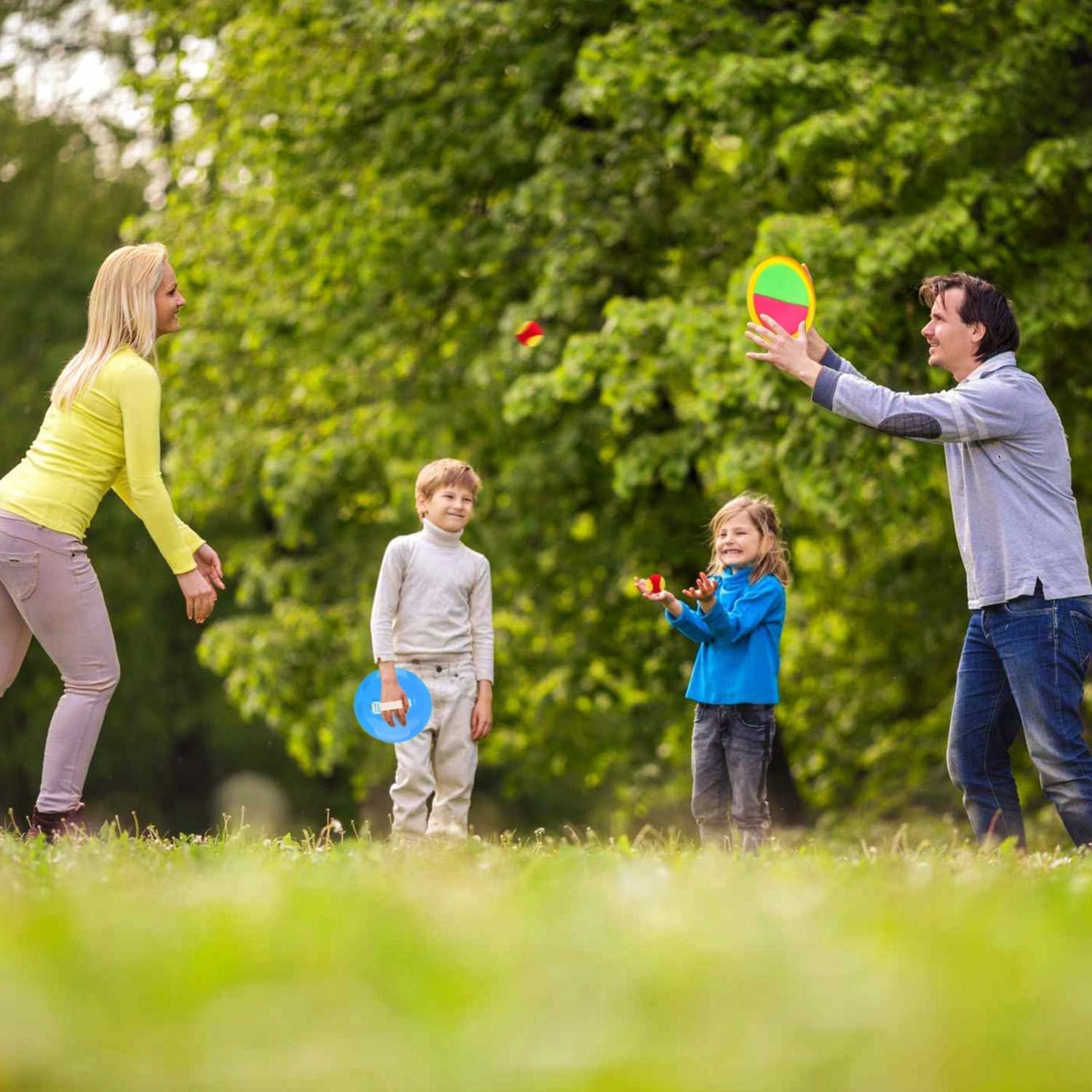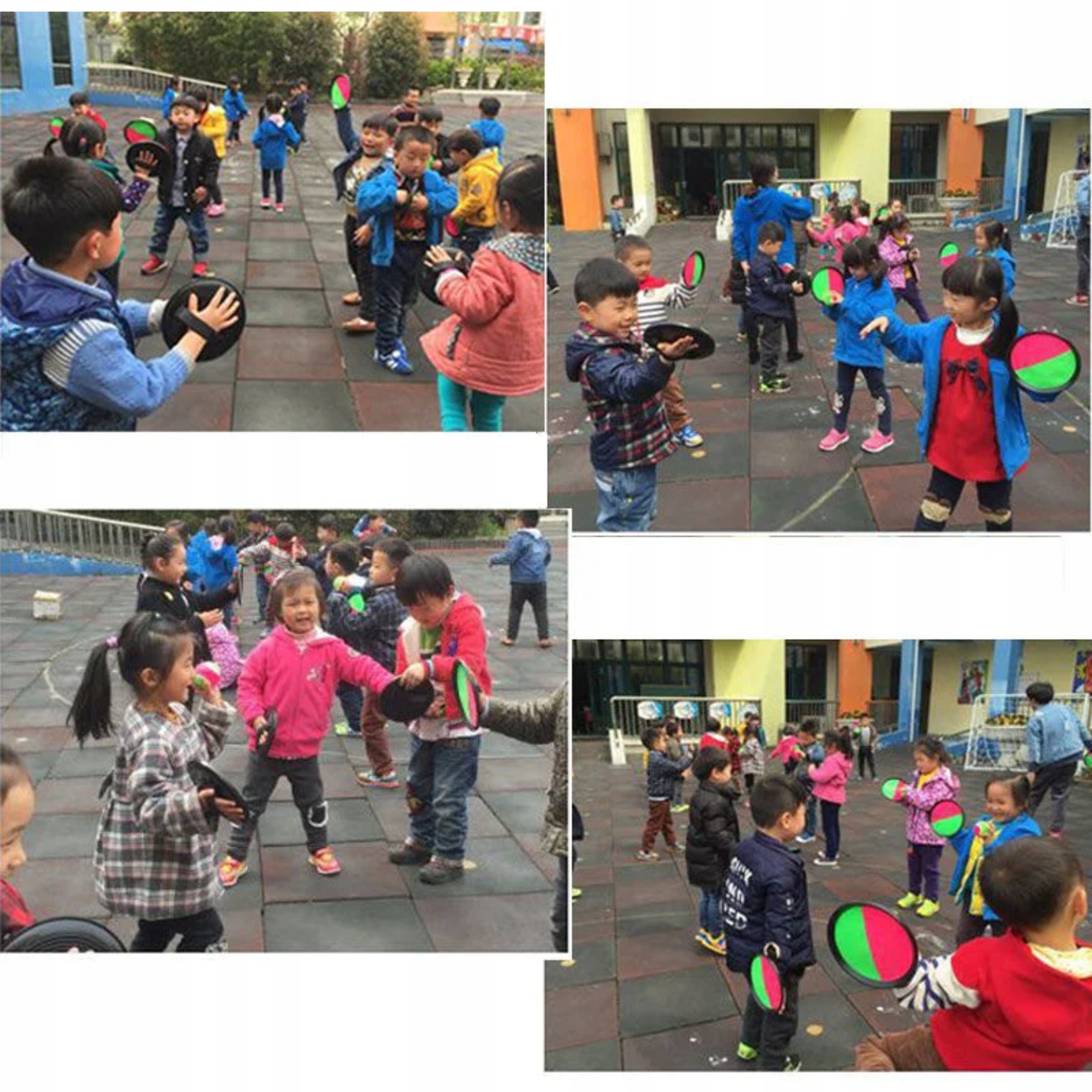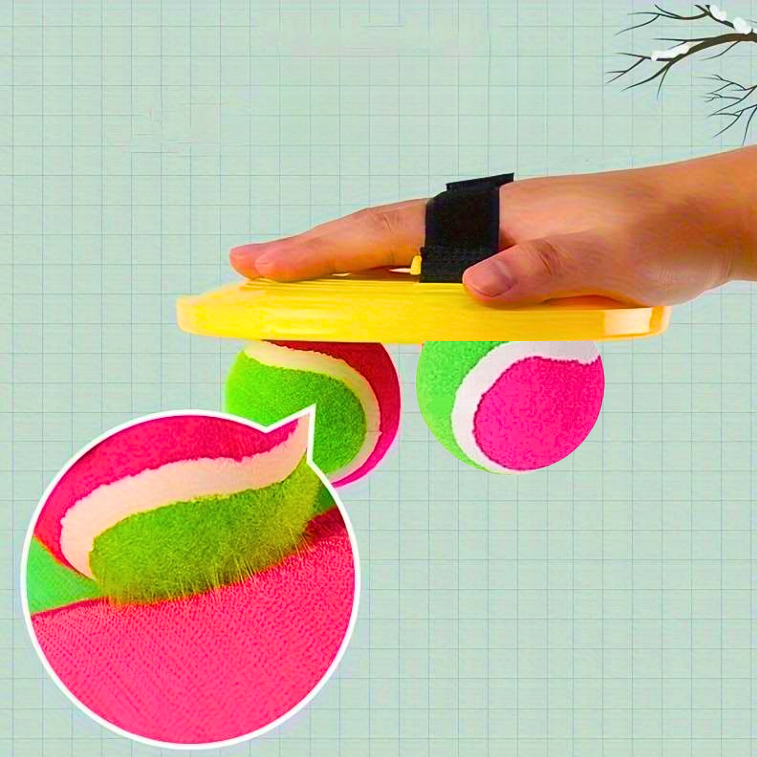 Ремінці, прикріплені до гребків, регулюються за допомогою липучок, тож ми можемо адаптувати їх до маленьких ручок дитини або великих ручок дитини для дорослих, що робить іграшку універсальною і грати в кечбол може кожен!