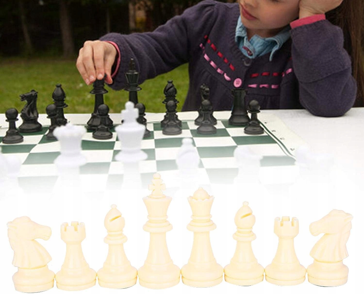 Легкий і портативний розмір, який легко носити. Хороша якість виготовлення з краями та зручним відчуттям у руці. Волокниста прокладка на нижній частині шахової фігури запобігає шуму. Добре продуманий дизайн робить його набагато розкішнішим. Шахи виготовлені з sx 05, виготовлені з екологічно чистого матеріалу пластик, не схильний до розтріскування