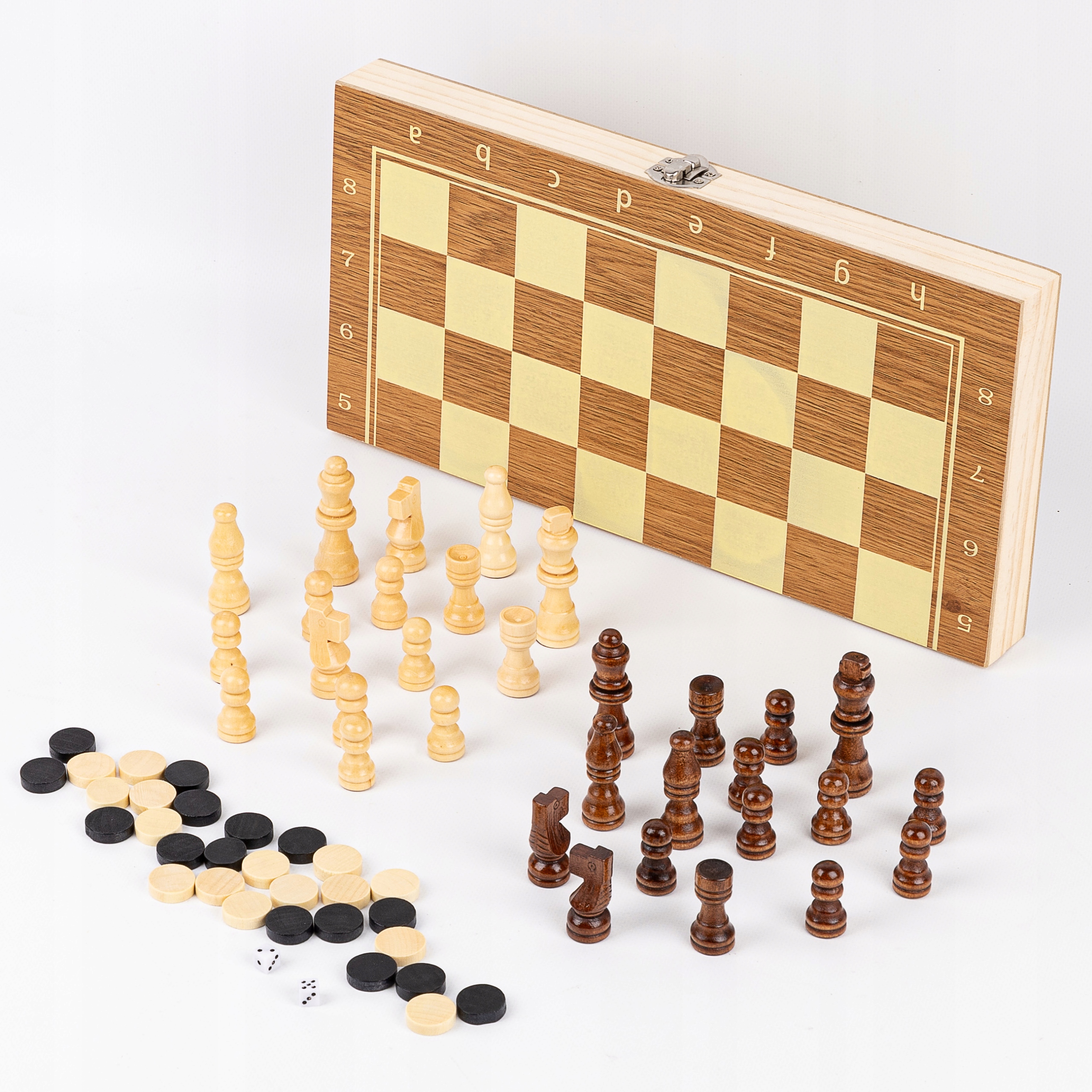 Представляємо надзвичайний набір 3в1 - Шахи, Шашки та Нарди! Це поєднання трьох захоплюючих настільних ігор, які подарують вам незабутні моменти розваги та в той же час розвинуть ваше логічне мислення та стратегічні навички.