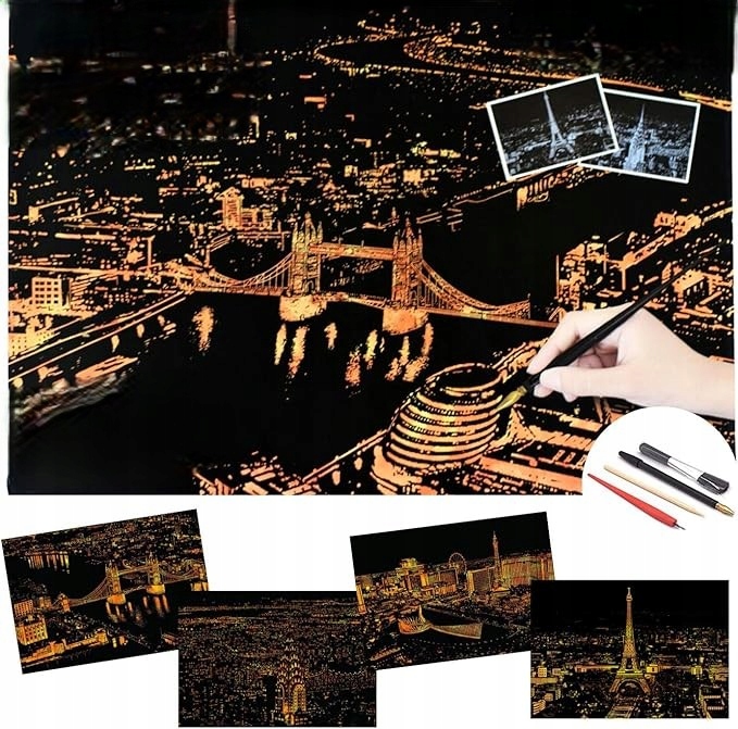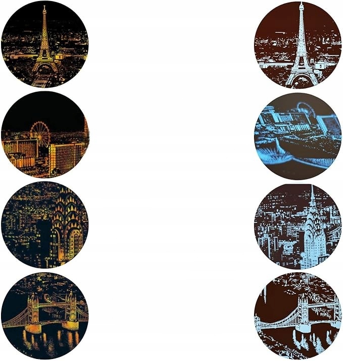 Nacnic Scratch-Art Leaves — унікальний набір для малювання для дітей і дорослих. За допомогою безпечних матеріалів, точних інструментів для дряпання та барвистих фонів ви можете створювати унікальні витвори мистецтва, натхненні містами світу. Ідеально підходить для спільної гри, розвитку творчих здібностей і прикраси інтер'єру. �✨