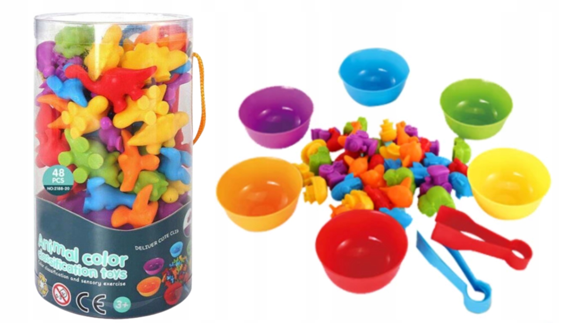➡ мультиелементні набори - містить до 48 динозаврів, 6 кольорових чашок, що робить його ідеальним для різних навчальних заходів.