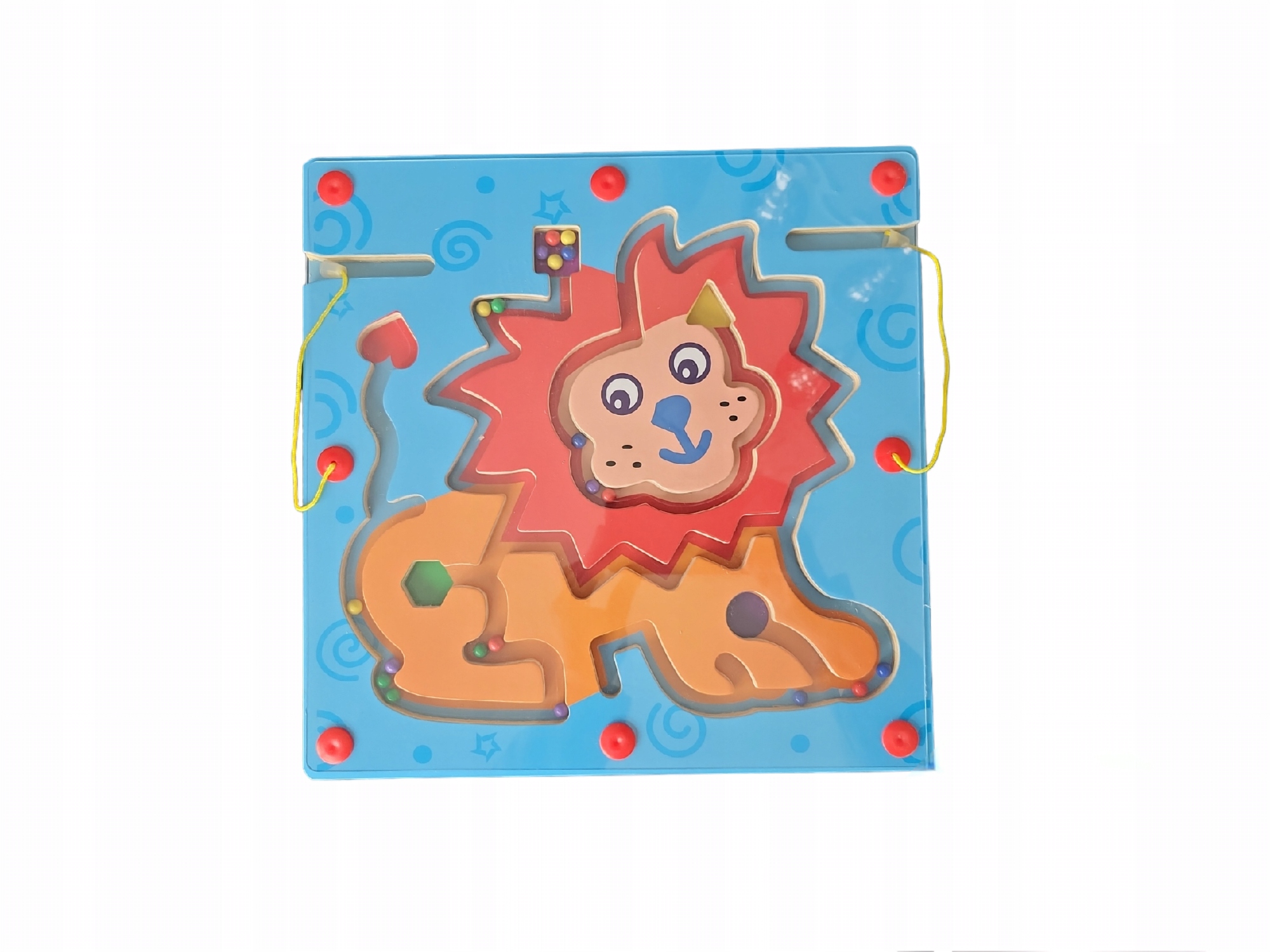 У лабіринті є барвисті кульки, , які необхідно доставити в потрібні місця, використовуючи дерев’яну паличку з дерев’яною паличкою з магнітом.