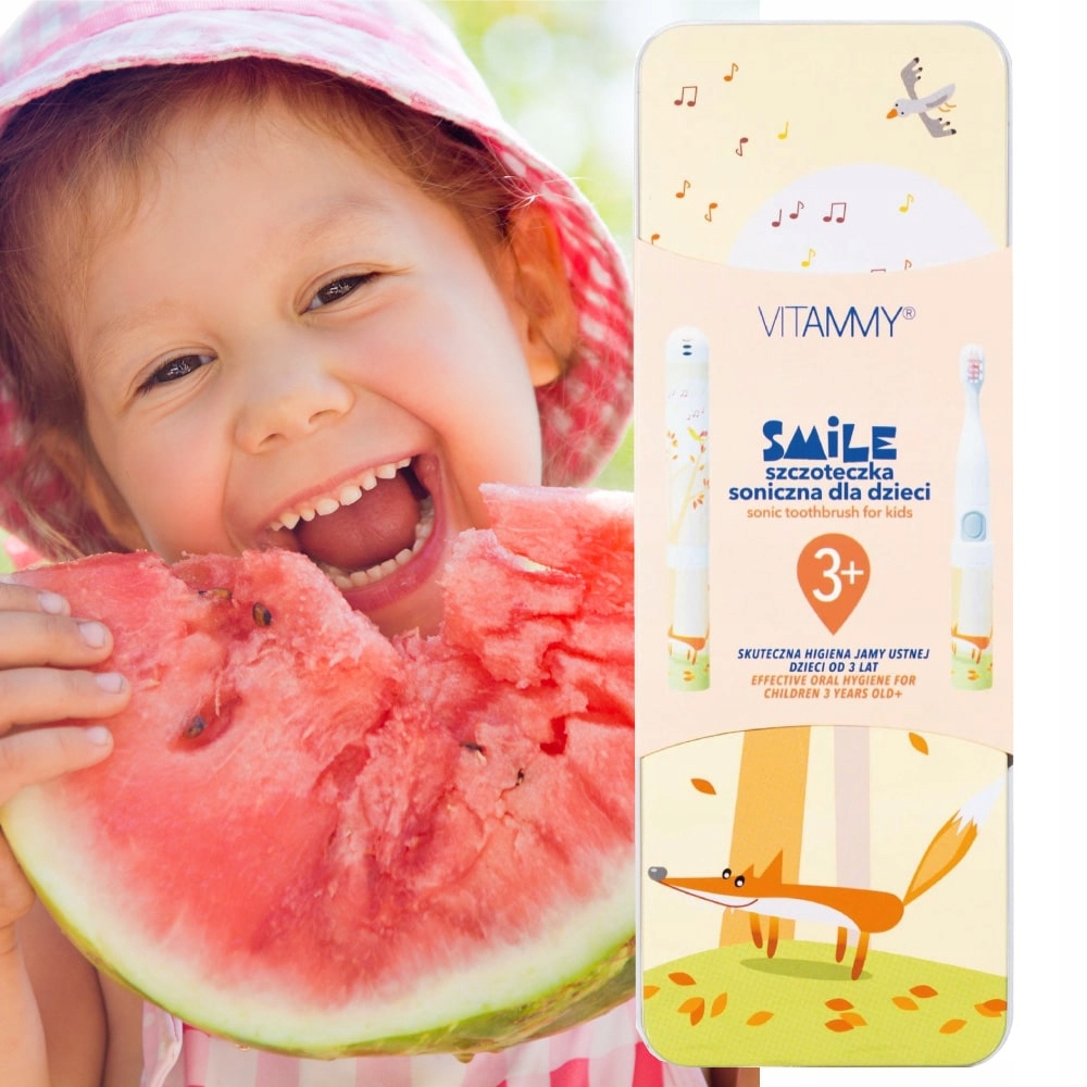 Це ідеальна зубна щітка для дітей, чудові кольори та казкові малюнки спонукатимуть вас до щоденної гігієни. Завдяки звуковій технології зубна щітка подбає про здорову посмішку кожної дитини. VITAMMY SMILE — яскрава та весела ідея, завдяки якій зубна щітка стане не лише предметом щоденного догляду за порожниною рота, а й чудовим гаджетом, який так люблять діти. Це також ідеальне рішення для дорослих, які віддають перевагу меншим чистячим голівкам, або для тих, чия дитина постійно дрімає.