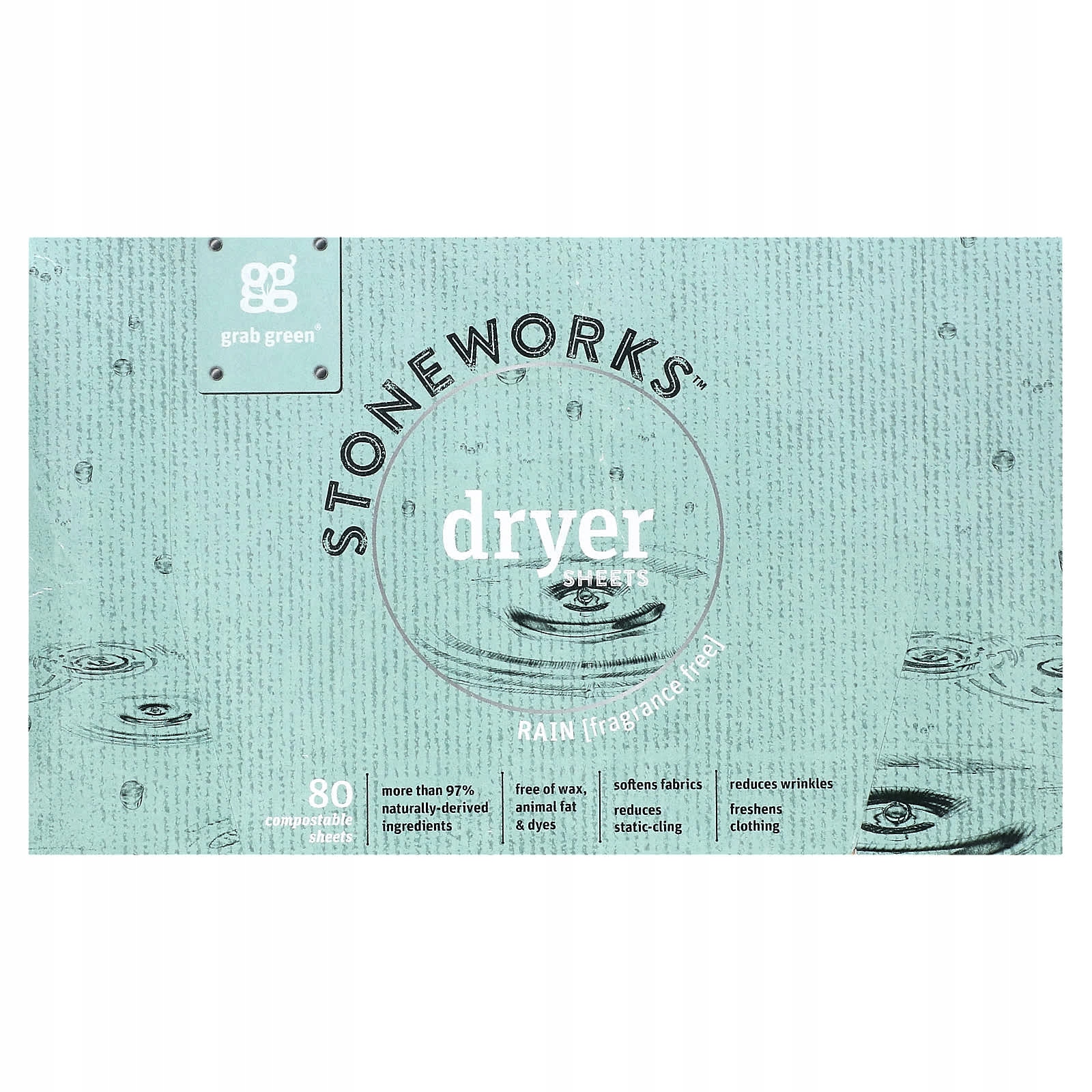 Grab Green, Stoneworks, Dryer Sheets, Rain, 80 Compostable Sheets