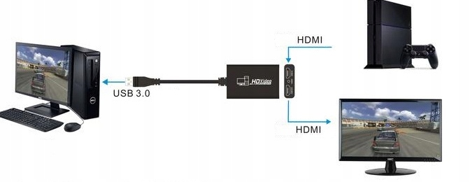 Просто підключіть Кабель HDMI до вхідного входу та пристрою, з якого ми хочемо записувати, наприклад, комп’ютера, консолі, декодера тощо. USB на пристрої відповідає за підключення граббера до пристрою запису (ПК), а вихід HDMI працює як шлейф, що дає додаткову можливість підключення до додаткових приймачів, таких як монітор, проектор тощо.