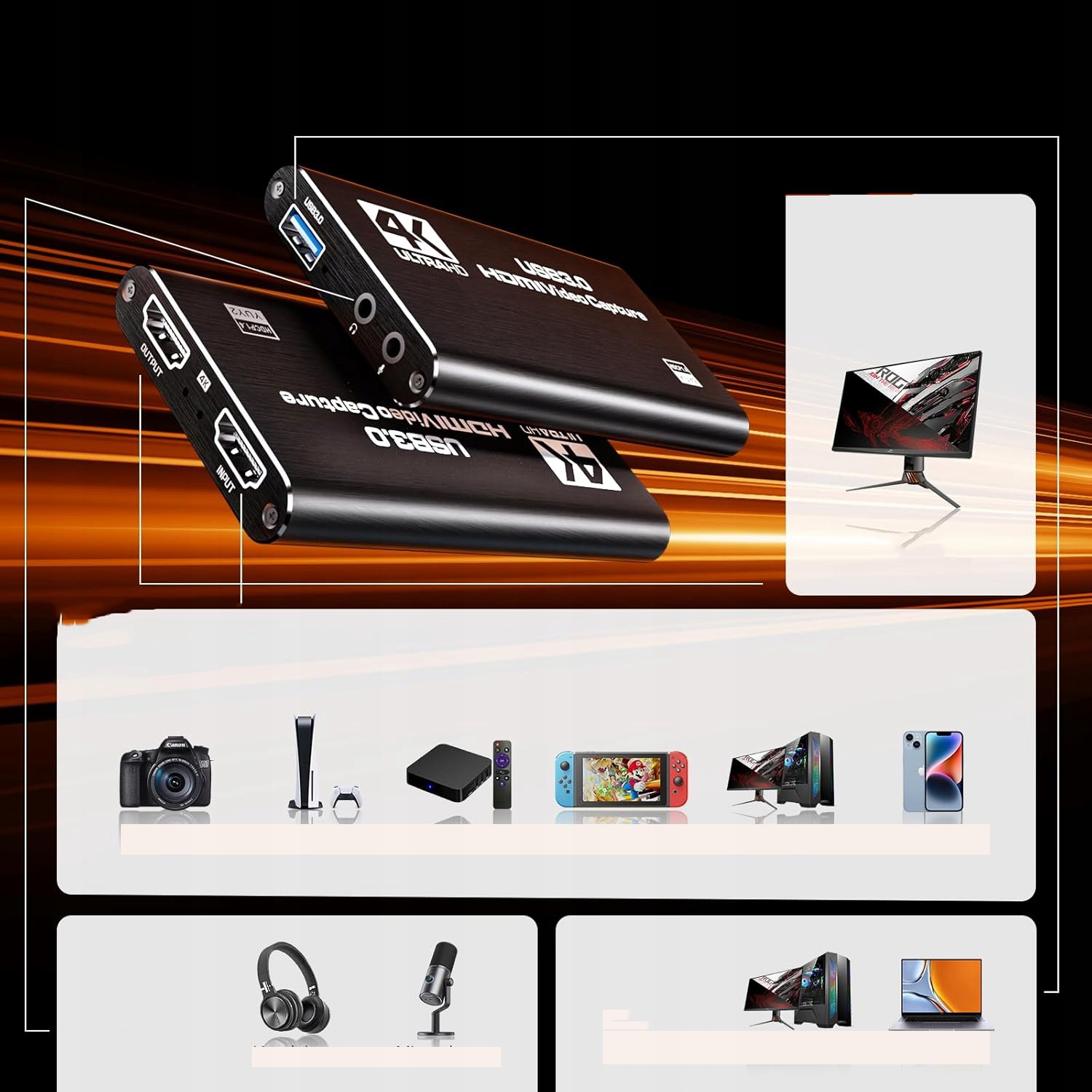 📺📺-частина на швидкій технології USB 3.0, вона може фіксувати відеосигнали одноразової однопідроздільної здатності без будь-яких затримок у прямому ефірі. (ПРИМІТКА: Приймаються лише стандартні 3,5 мм набори мікрофона.