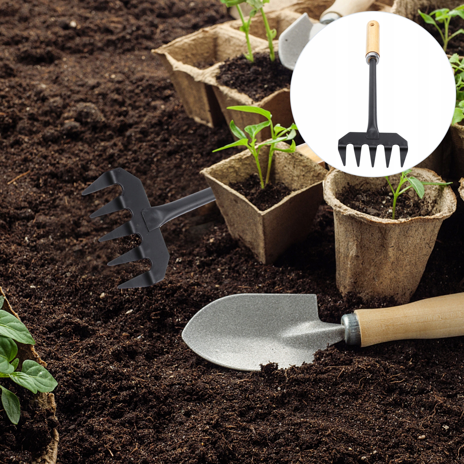 ✅Ці маленькі граблі виготовлені з міцного та міцного матеріалу. Зручна дерев'яна ручка дозволяє копати глибше і забезпечує міцний хват, зменшуючи втому рук і зап'ястя. Ідеальний інструмент для обробки твердого ґрунту та швидкої аерації.