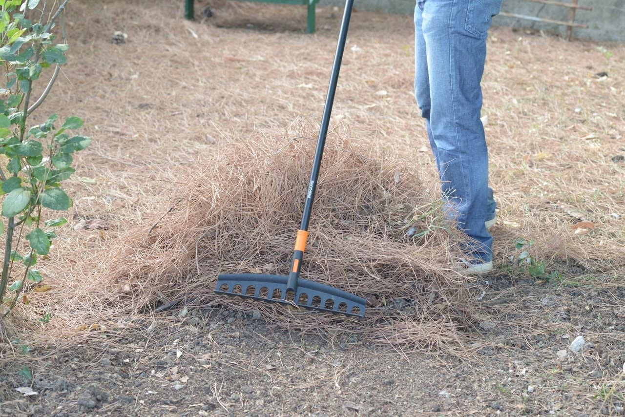 Згрібаюча головка (ширина 41 см) для згрібання, вирівнювання та згладжування квіткових і овочевих грядок і для згрібання розпушеної трави. Також підходить для підготовки ґрунту для насіння. Ефективна робота завдяки ідеальній ширині згрібання 41 см, оптимальній відстані між зубцями для згрібання дрібних гілок або каміння без ковзання