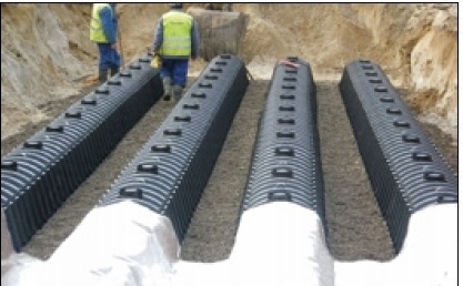 - Стійкість до великих транспортних навантажень - Інфільтраційний тунель об'ємом 300 л забезпечує свободу розвитку території над місцем установки. Тунелі об’ємом 300 л витримують тривале навантаження 59 кН/м2 (Twin – 35 кН/м2), що означає, що вони стійкі до важкого вантажного руху.