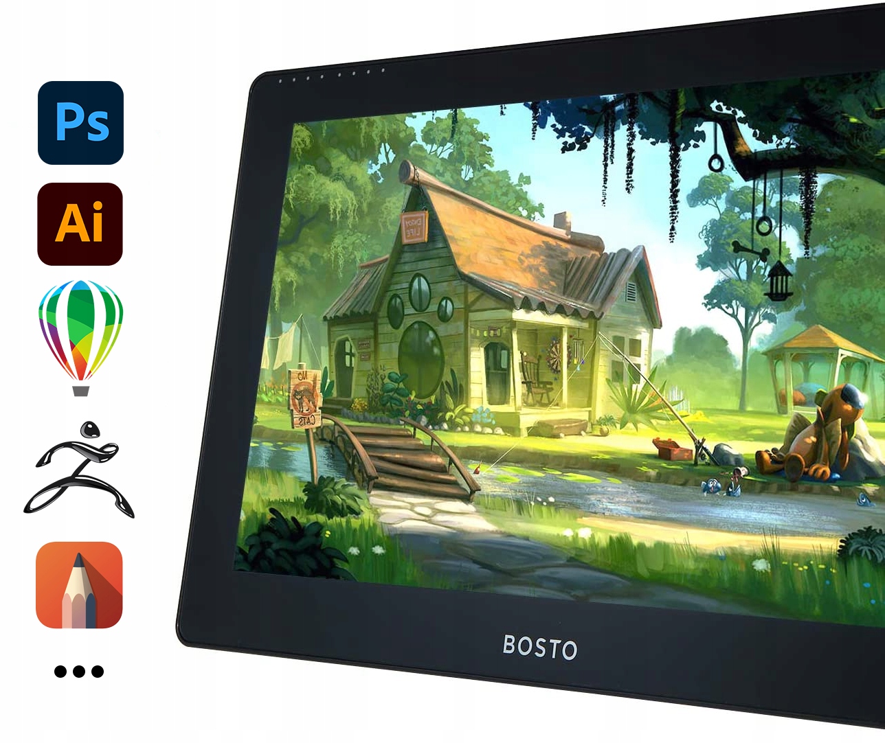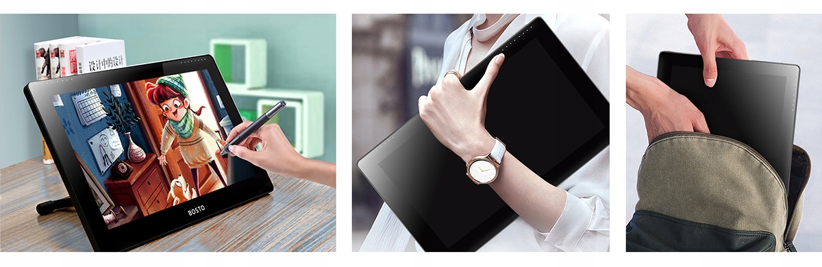 - Графічний планшет BOSTO має широкий кут огляду 170°H,160°V, надзвичайно чітке зображення та високу якість без зміни кольору!