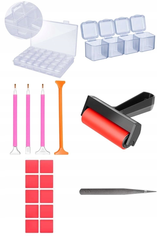Diamony Diy Set містить дуже практичну сумку для інструментів, а також організатор для алмазів та наклейок, щоб описати їх на організаторі. Завдяки цим елементам ви можете легко зберегти порядок і провести ретельну сегрегацію окремих елементів, що входять до набору. Організатор закритий, тож ви не втратите і не вивили алмази.