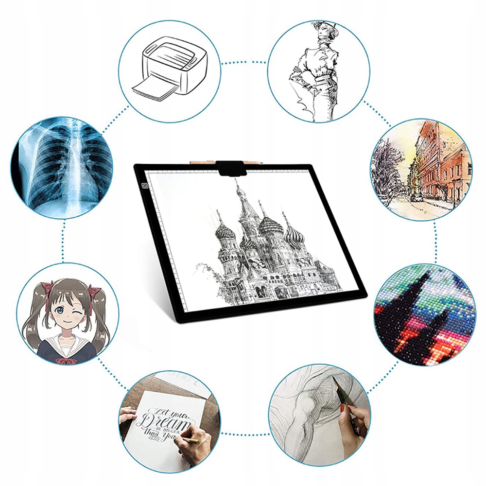 🏆【Широке застосування】 Світловий стіл формату A3 достатньо великий для алмазного малювання та вінілової прополки. Також ідеально підходить для створення трафаретів, 2D-анімації, акварельного паперу, мультфільмів, фотографії, плівки, перенесення слайдів, рентгенівського спостереження, каліграфії, тисненої каліграфії, скрапбукінгу, дизайну татуювань, перенесення татуювань, ескізів і малюнків, потокової передачі, дизайну тканини, шиття, малювання на склі, квілтингу та багато іншого.