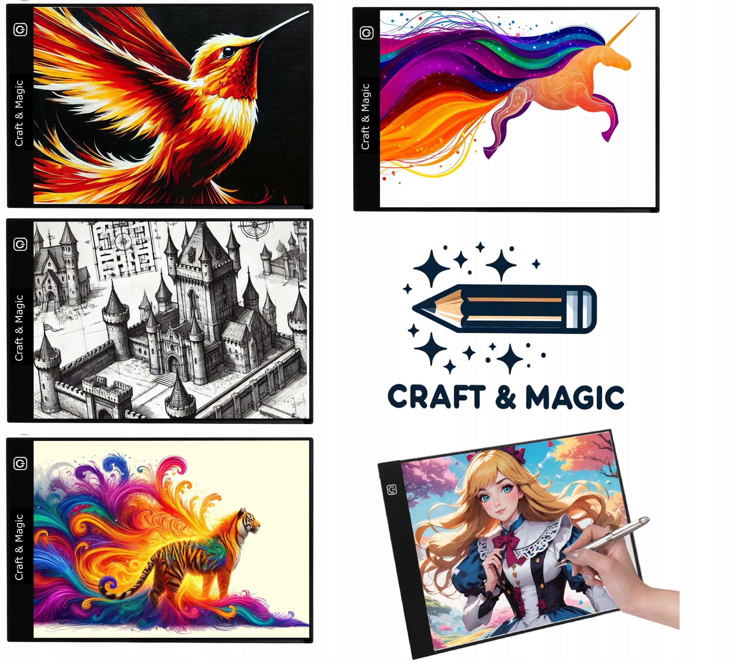 Craft & Magic™ це бренд, створений для дітей, підлітків і дорослих, які хочуть розвивати свою творчість і відкривати світ мистецтва в сучасному ключі. Наші продукти поєднують у собі інноваційні технології з увагою до деталей і безпеку користувача, що робить їх ідеальними як для навчання, так і для повсякденних ігор.