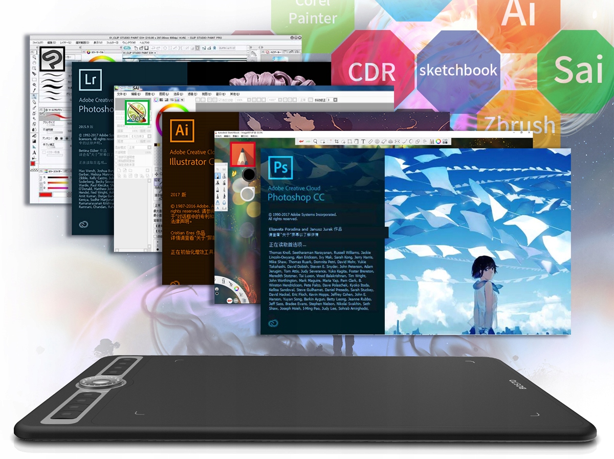 Планшет працює з найкращими графічними програмами, такими як: Photoshop, SAI, Clipstudio, Sketchbook, Artage, CAD, Adobe, Illustrator, Painter, Flash, C4D та іншими. Ідеально підходить для малювання ілюстрацій, дизайну, анімаційних ігор, онлайн-навчання тощо.