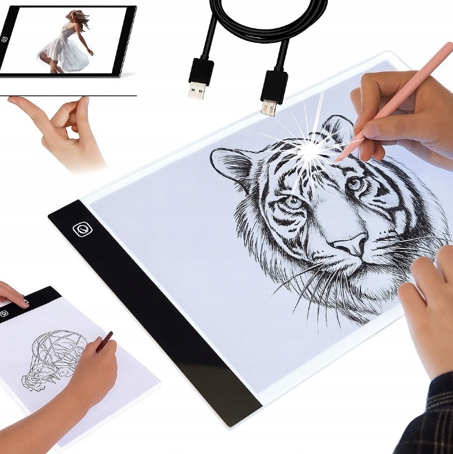 Набір призначений дляпочатківців художників, дизайнерів,дітей, які навчаються малюваннюі людей, які розвивають творчі пристрасті. Світлодіодна дошка формату A4 з підсвічуванням, графічною рукавичкою та набором із 200 цифрових трафаретів є ідеальним помічником для малювання, вивчення пропорцій, каліграфії та ілюстрації.
