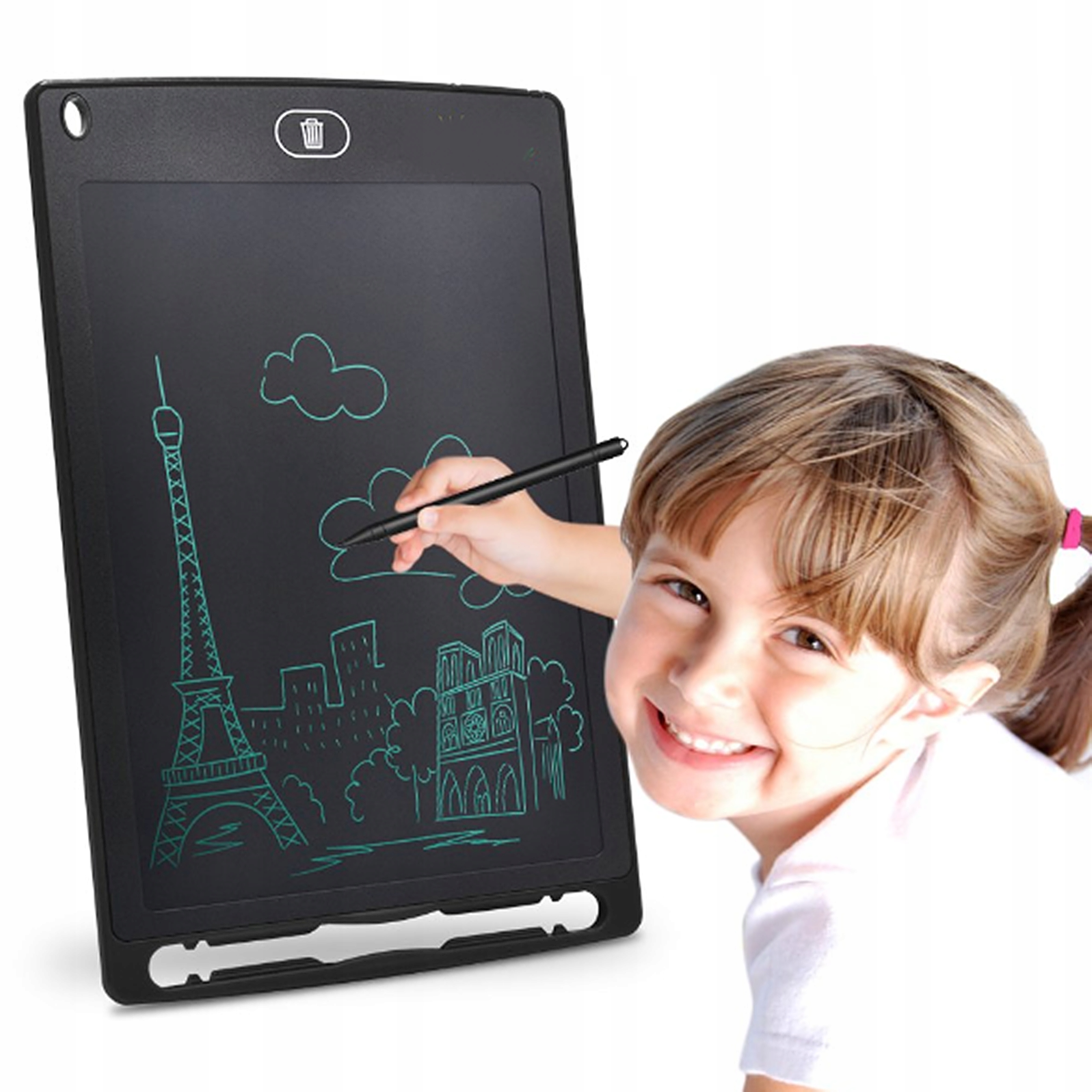 Сучасний і дуже практичний планшет для малювання, письма та створення нотаток і ескізів для дітей. Ударостійкий і небиткий екран значно підвищує його довговічність. Це екологічно чистий графічний планшет, який забезпечує продуктивність без пилу та чорнила. На ньому дуже легко малювати і писати, а стерти можна одним натисканням кнопки. Ідеальний подарунок для вашої дитини.
