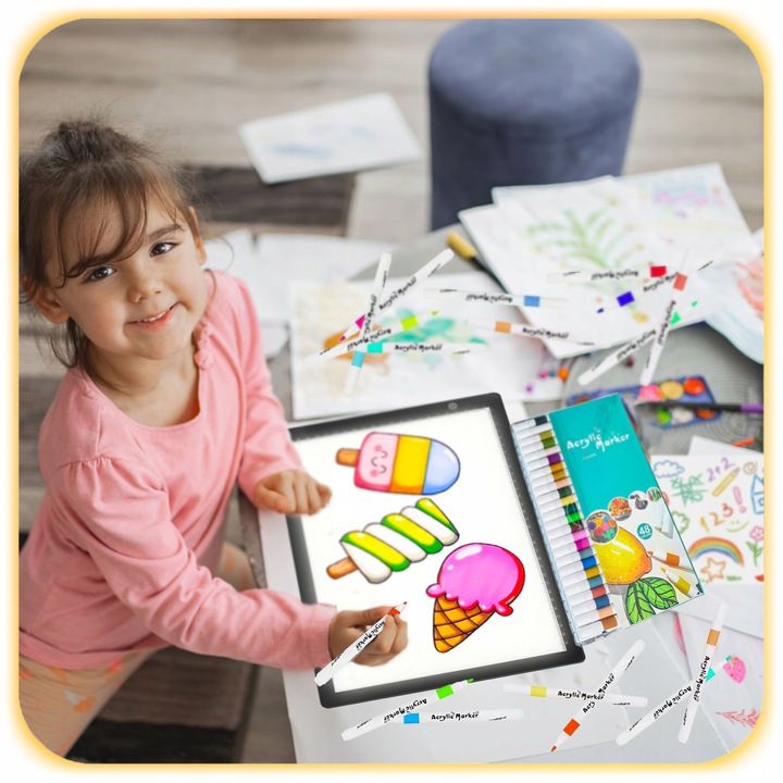 ГРАФІЧНИЙ ПЛАНШЕТ ДЛЯ МАЛЮВАННЯ, ДОШКА ДЛЯ МАЛЮВАННЯ СВІТЛОІДОМ + 48 МАРКЕРІВ