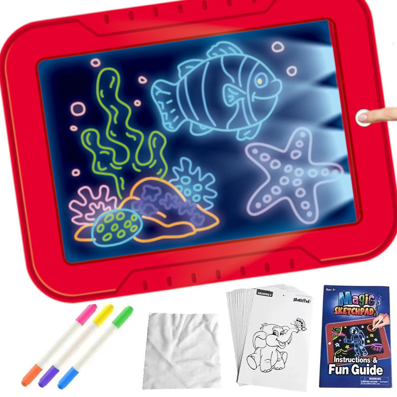 Дошка зі світлодіодним підсвічуванням – розвиваюча іграшка для дитини, яка дозволяє самостійно створювати чудові малюнки, а завдяки змінним дошкам навчитися писати чи рахувати, що сприяє до позитивного розвитку. Це фантастичний набір, який підходить для гри вдома, під час подорожі чи відпочинку.