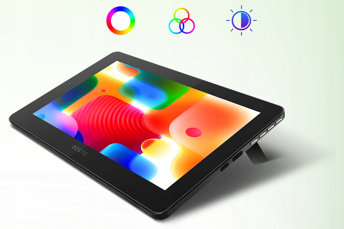 - Графічний планшет BOSTO має широкий кут огляду 178°, надзвичайно чітке зображення та високу якість без зміни кольору!