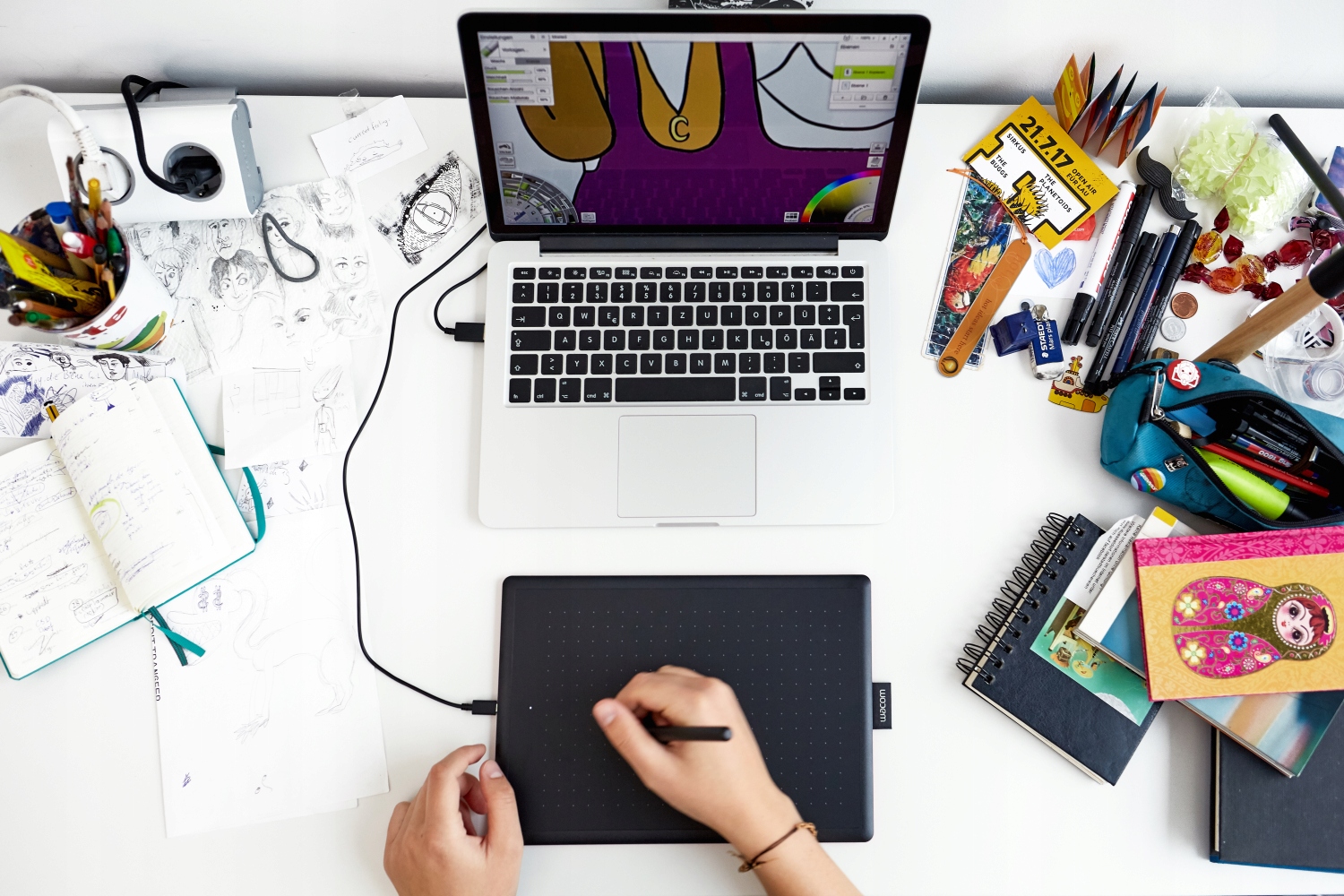 Що б ви не хотіли створити або навчитися, One by Wacom робить це легко. У планшеті є все, що вам потрібно, і нічого, чого ви не маєте, тож легко розпочати наступний творчий проект, домашнє завдання чи підготовку до курсу. Просто підключіть кабель USB до свого Mac, ПК або Chromebook*, завантажте та встановіть драйвер** і все готово.