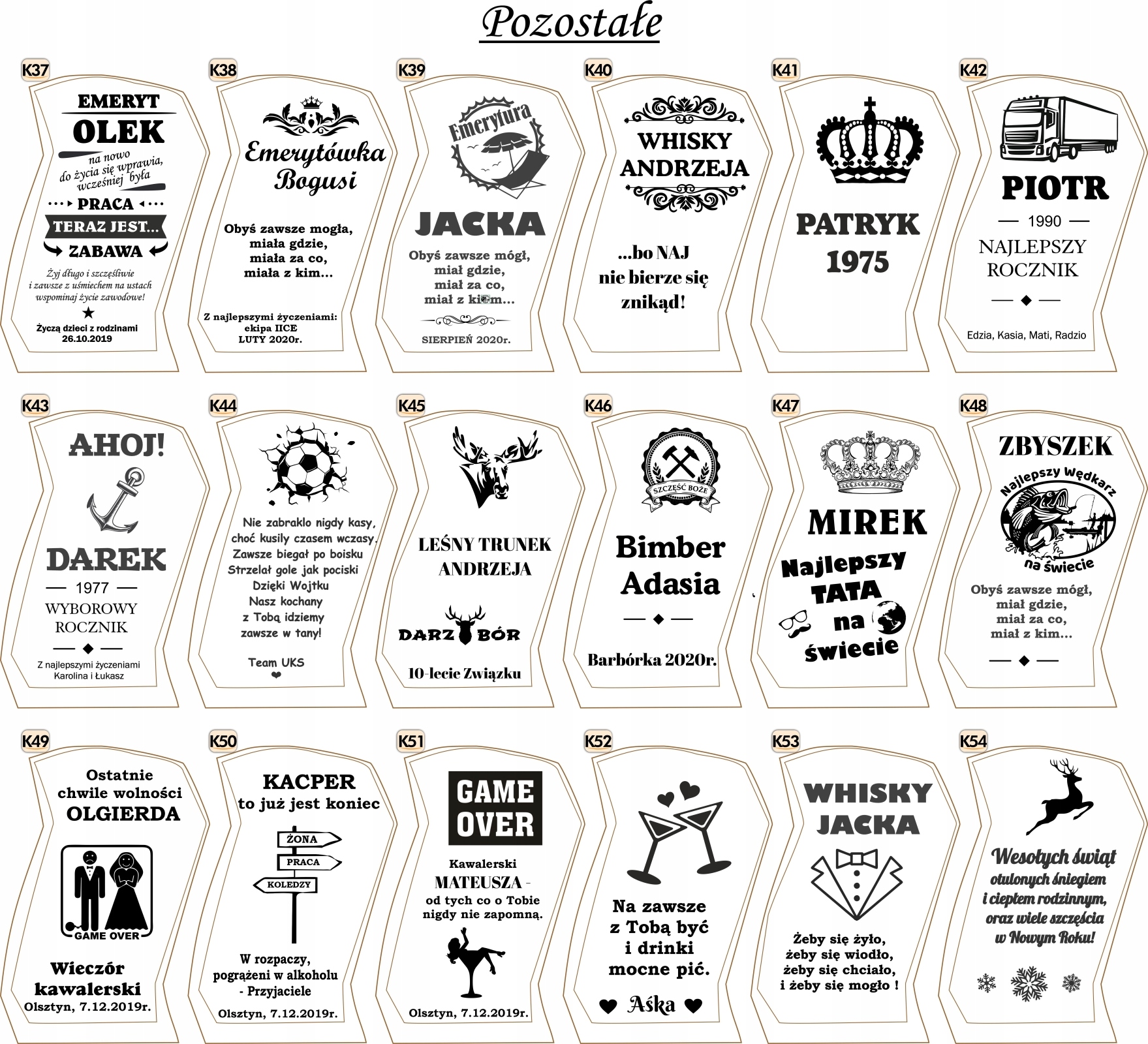 Все гравірування візерунки можна адаптувати під ваші потреби, тобто дати, імена, числа можна змінити відповідно до вашого свята.