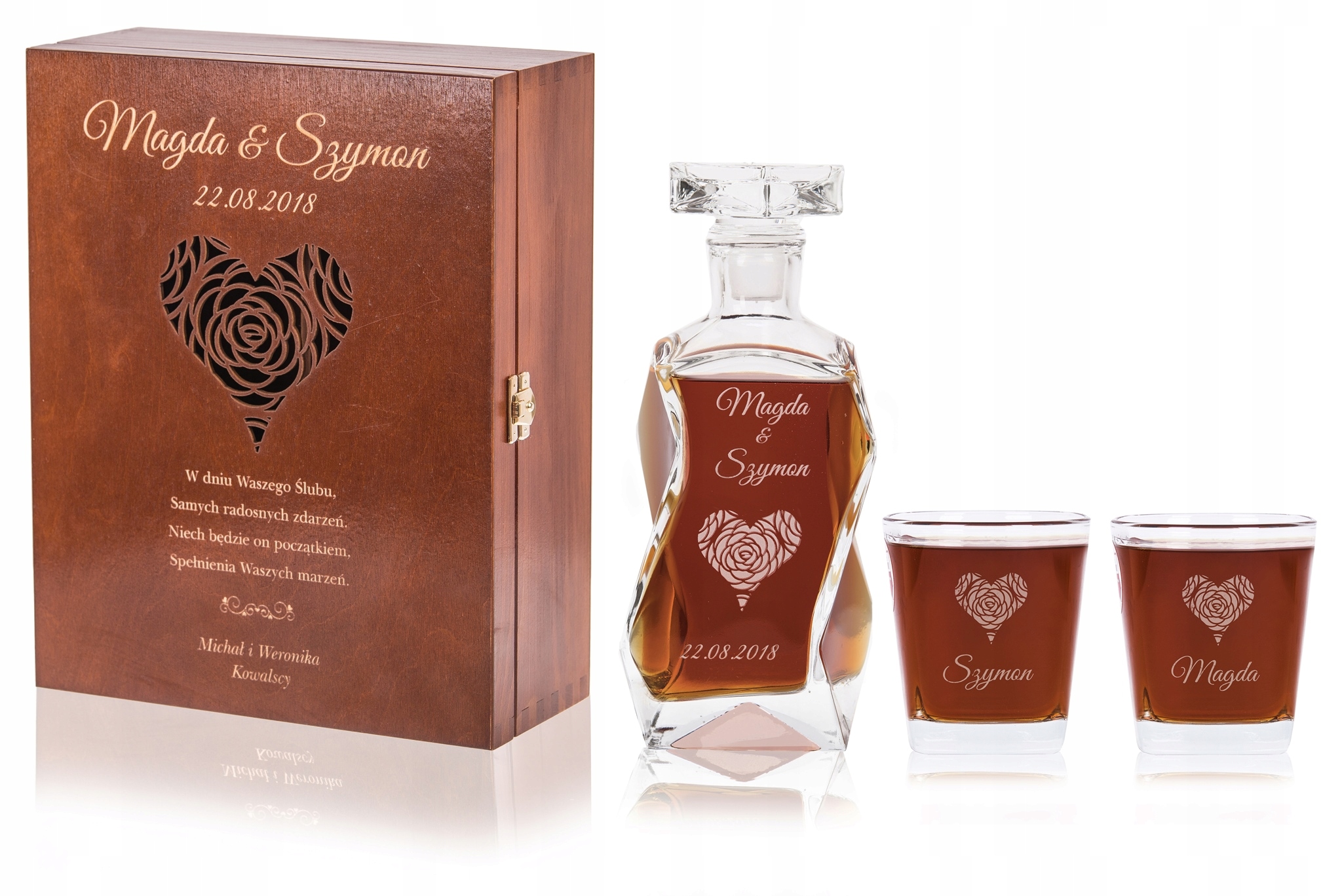 Графин, коробка та склянки мають індивідуальне гравіювання, яке додає оригінальності та є чудовим сувеніром на довгі роки!