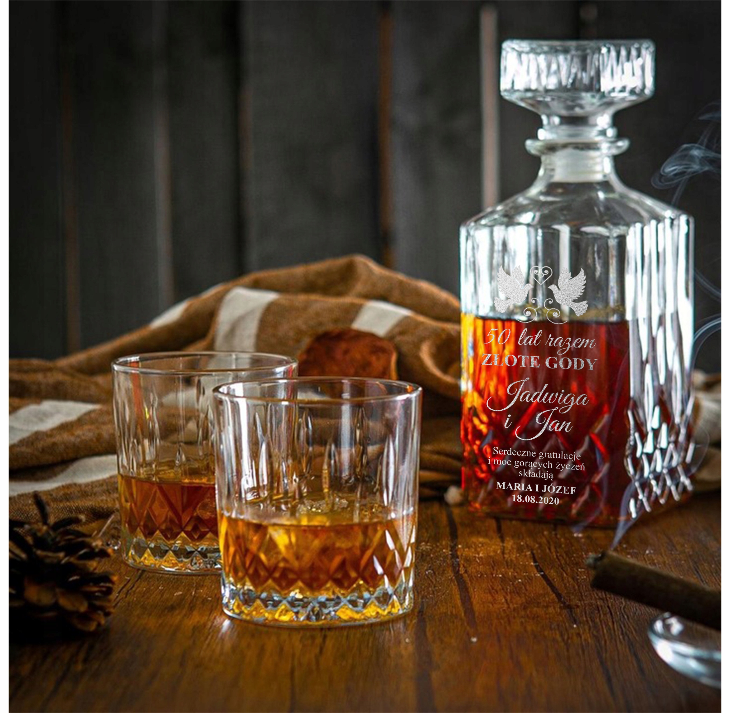 НАБІР ГРАФИН + 6 КУЛЯКІВ ДЛЯ ВІСКІ З ПРИСВЯЧЕНИМ ГРАВІЮВАННЯМ НА РІЧНИЦЮ ВЕСІЛЛЯ