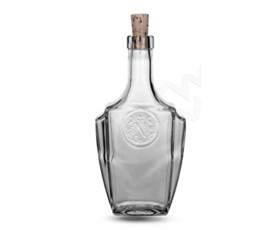 Грамин скляний з двома фужерами, все за дерев’яною підставкою у формі корони. p>