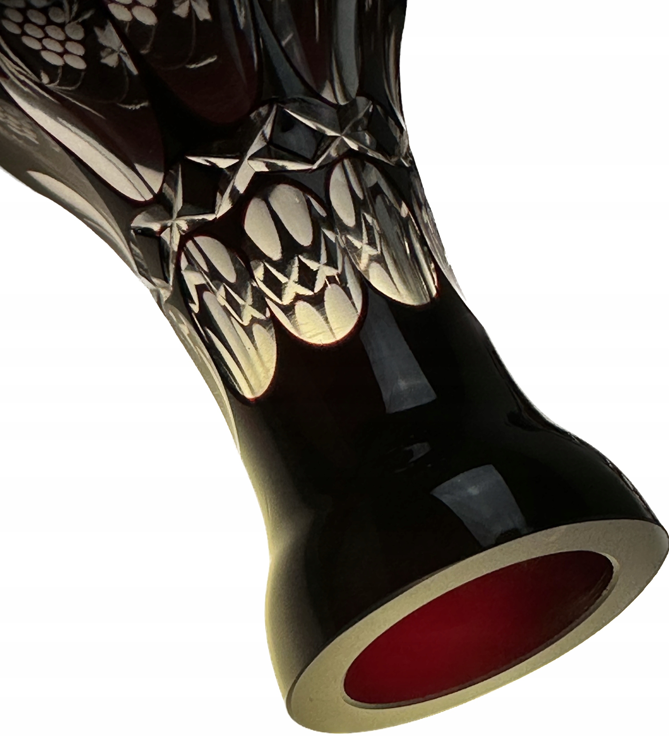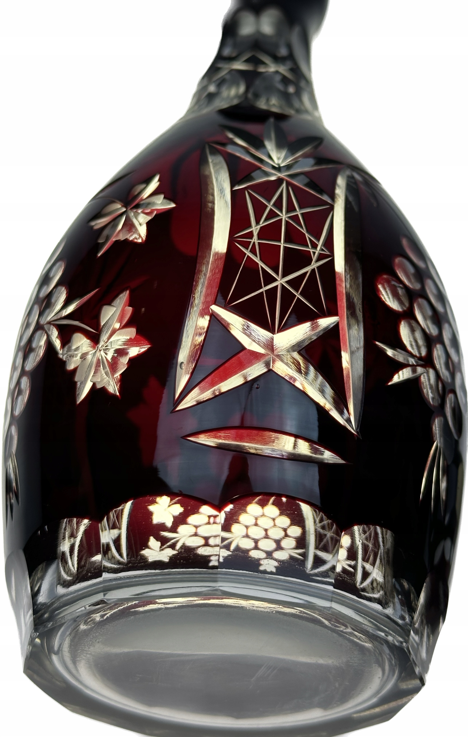 Графин рубіновий, кришталева огранка, виноград, висота з пробкою 40 см