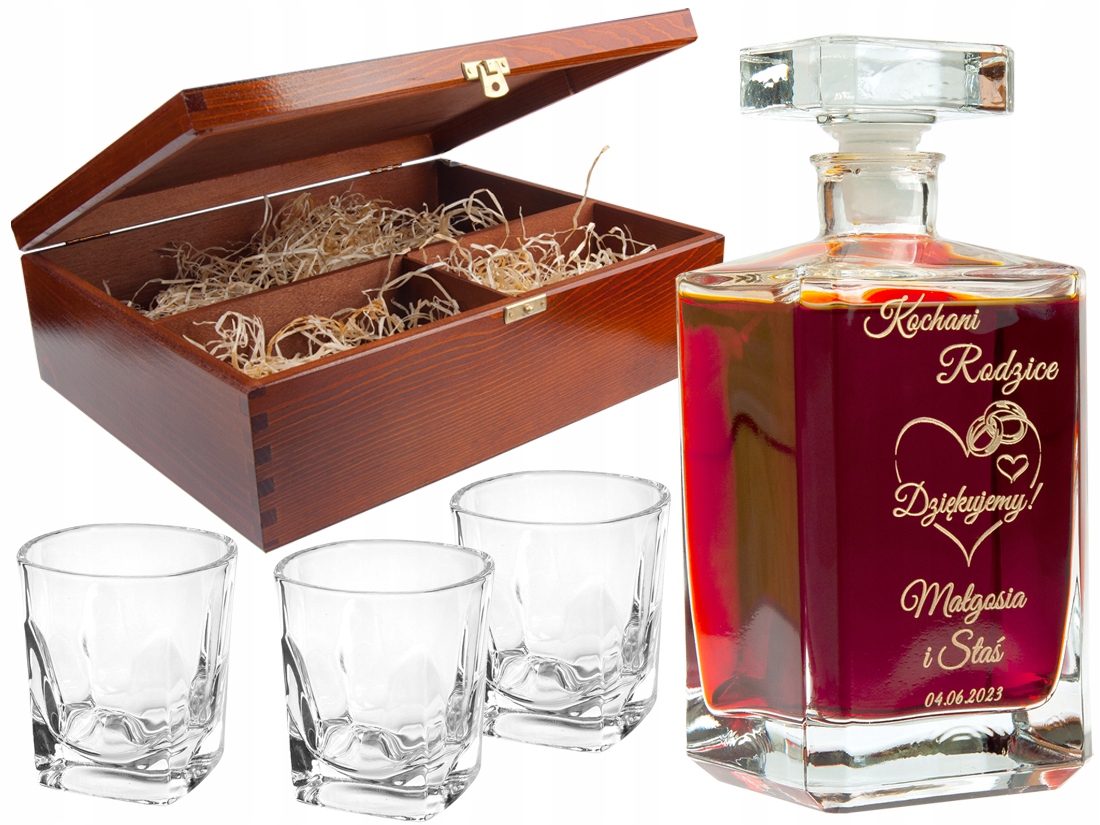 Красивий скляний графин виготовлений прямо на графині - один з ідеальних подарунків на день народження, іменини, подяка батькам, кумам, бабусі, дідусеві, подарунок на день весілля, а також коли ви не знаєте, що купити імениннику чи імениннику.На скляному графині, доступному в нашій пропозиції, можна вигравірувати будь-який текст, що дозволяє додати персоналізації та зробіть графин унікальним подарунком для близької людини. Елегантний графин, класична позачасова форма ідеально вписується як у сучасний, так і в традиційний інтер’єр. Завдяки своїй формі та прозорості скло створює прекрасні відблиски світла, які підкреслюють усі відтінки кольорів алкоголю, що міститься в ньому. Це справжнє свято для очей. Графин BURBON є практичним і красивим доповненням до столу, бару чи вітрини. Це також актуальна ідеальна ідея для вражаючого та зі смаком подарунка.