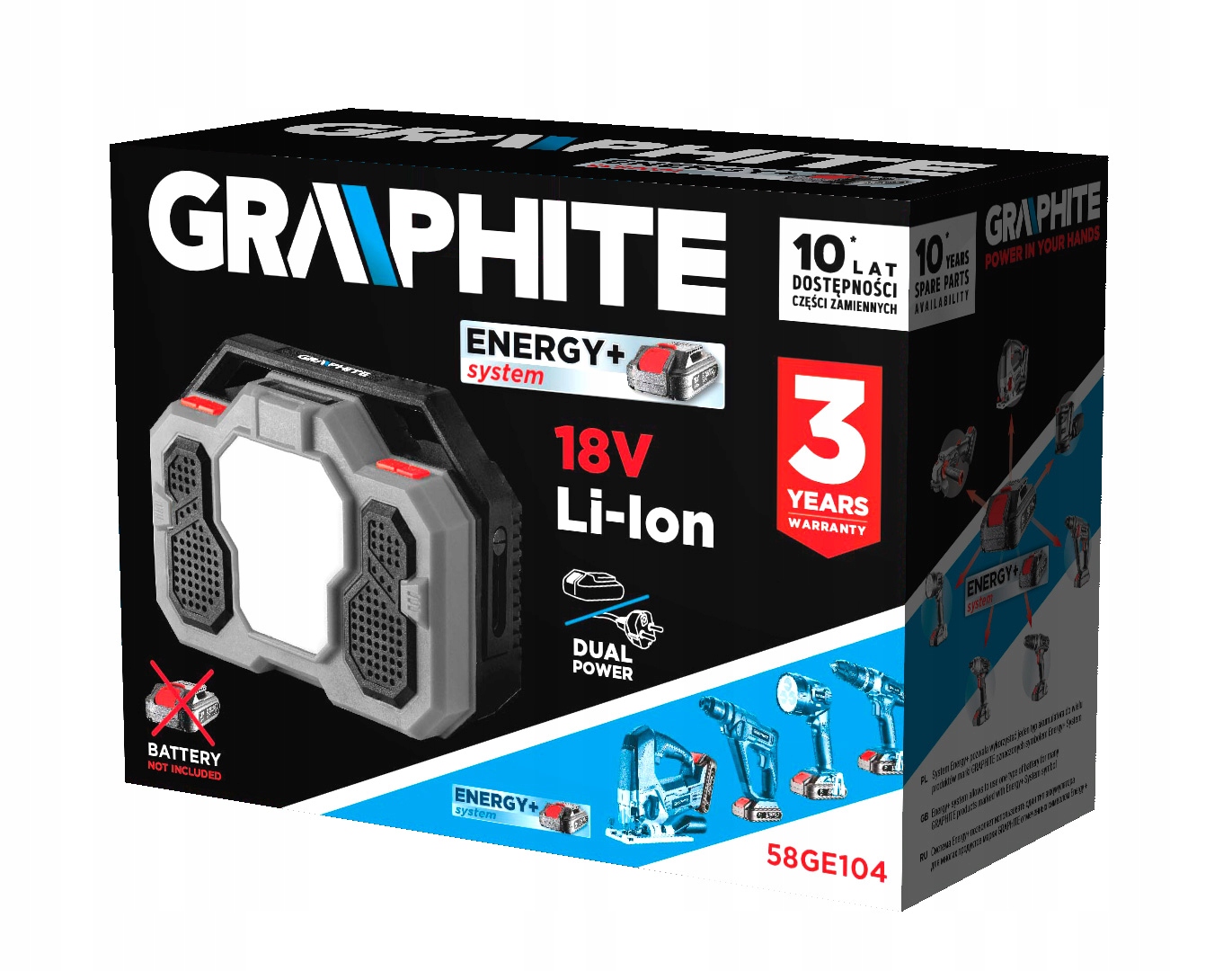 Акумуляторно-мережева радіостанція GRAPHITE Energy + 18 V, Li-lon, без батареї 58GE104 - пристрій, стійкий до пилу, пилу та делікатної оббивки, рекомендований для будівельних майданчиків, будівельних майстерень і холів. Живиться або від кабелю, підключеного до мережі, або від літій-іонного акумулятора 18 В (не входить в комплект). Радіо має два динаміки потужністю по 3 Вт кожен, LCD дисплей, функцію FM (87,5 - 108 мГц) і Bluetooth, світлодіодну лампу 15 Вт і потужність 21 Вт, складну антену, різьблення для кріплення і гарантію 3 роки. від торгової марки GRAPHITE. Це радіо стане чудовим подарунком для кожного професіонала та ентузіаста DIY.