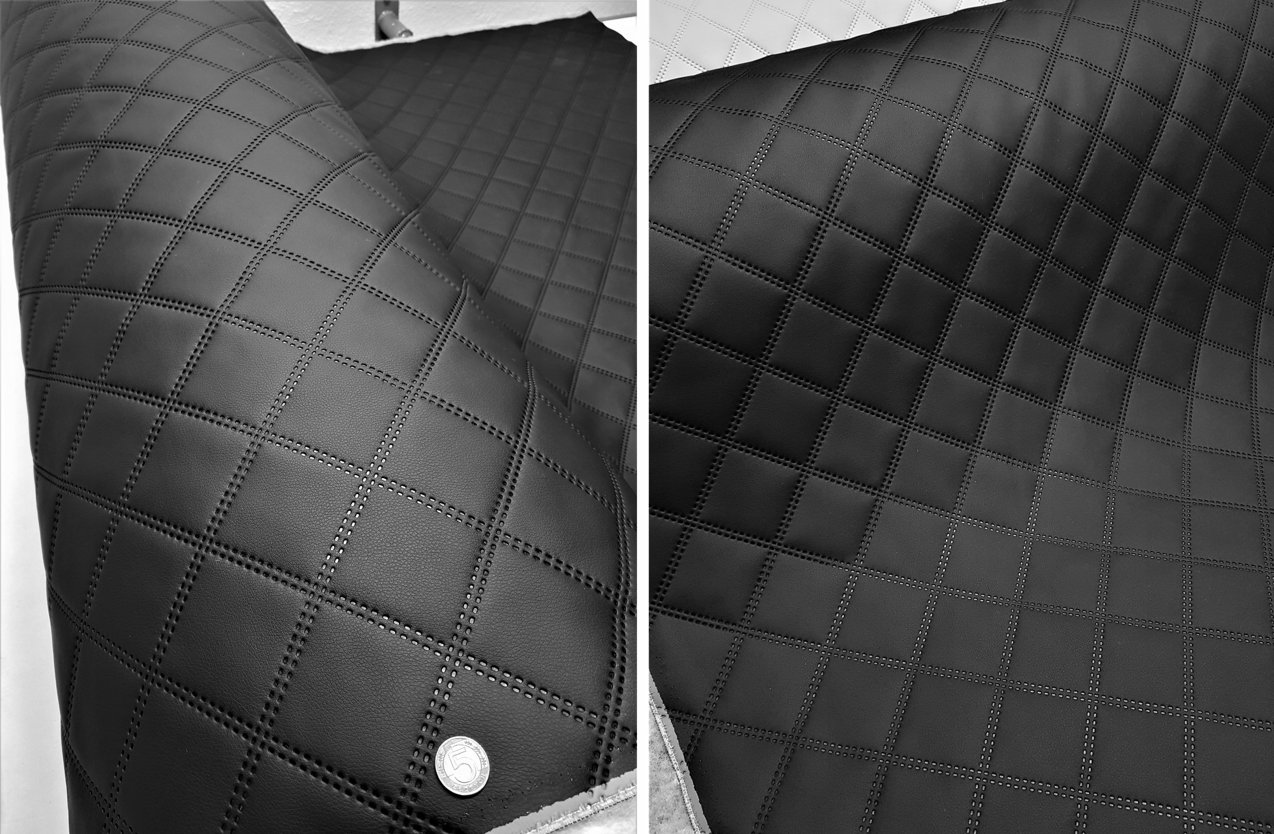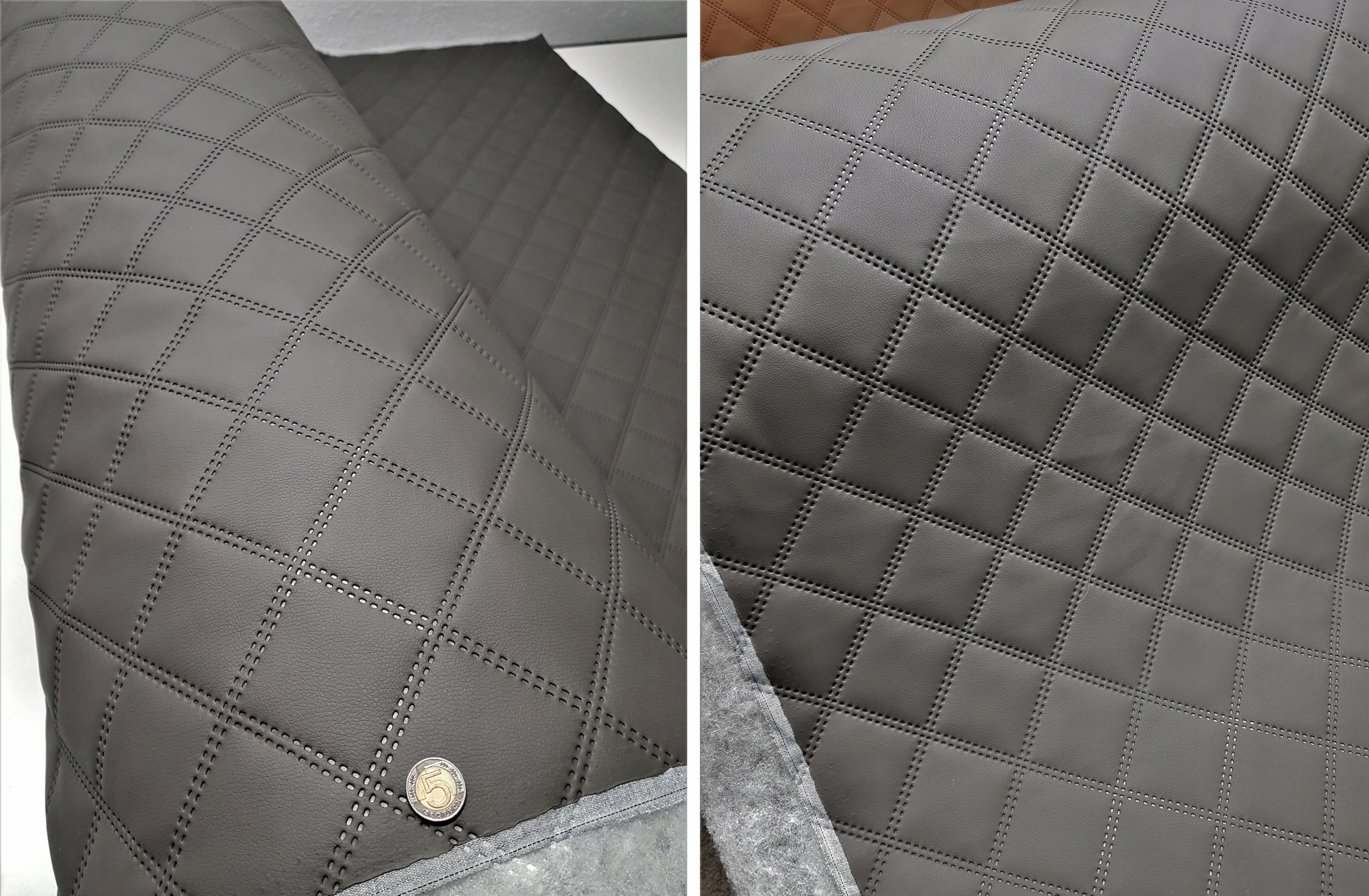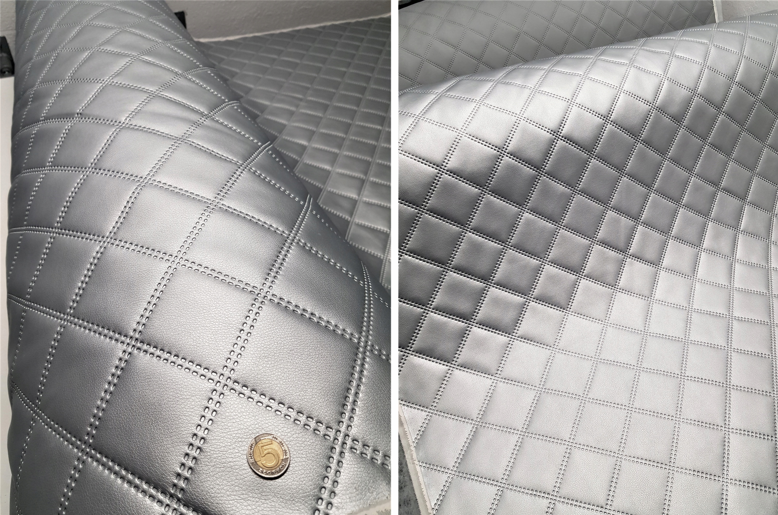 Оббивка з ультразвукової стьобаної екошкіри (без ниток) з малюнком 7х7 см з глибоким 3D ефектом, обшита товстим теплоізоляційним шаром 250гр/м2. Він виправдає очікування навіть найвимогливіших клієнтів. Новий дизайн!