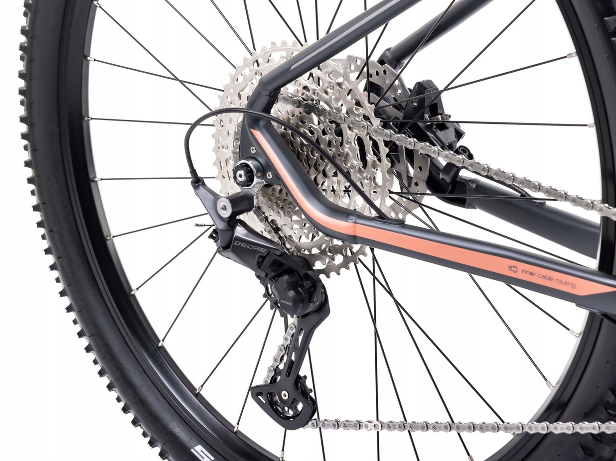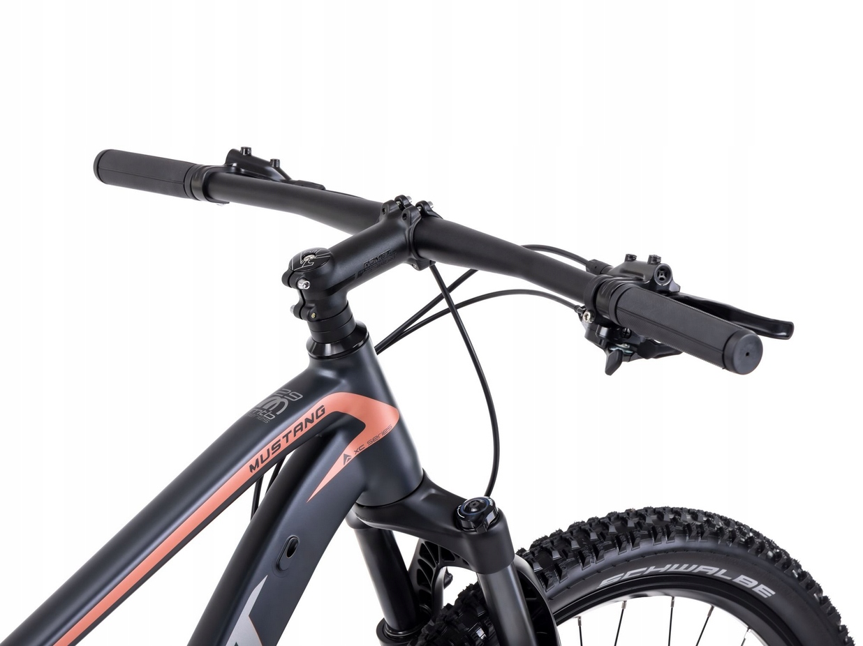 Ця універсальна модель складається з компонентів, які будуть надійними протягом тривалого часу. Компетентність у польових умовах включає, зокрема: завдяки передньому амортизатору Rock Shox Judy, чий прогин 100 мм поглинає всі нерівності. Модель оснащена 12-швидкісним приводом Shimano. Задній перемикач Deore відмінно працює з касетою з широким діапазоном передавальних чисел, завдяки чому перемикання передач відбувається швидко і плавно. Правильний вибір гальм має величезний вплив на безпеку водіння. У Mustang M8 ми використовували перевірений набір Shimano на основі двопоршневих супортів. Велосипед легко котиться завдяки міцному комплекту алюмінієвих коліс, які в поєднанні з шинами Michelin Country Grip мають дуже хороші ходові якості. Модель доступна в 3 розмірах рами.