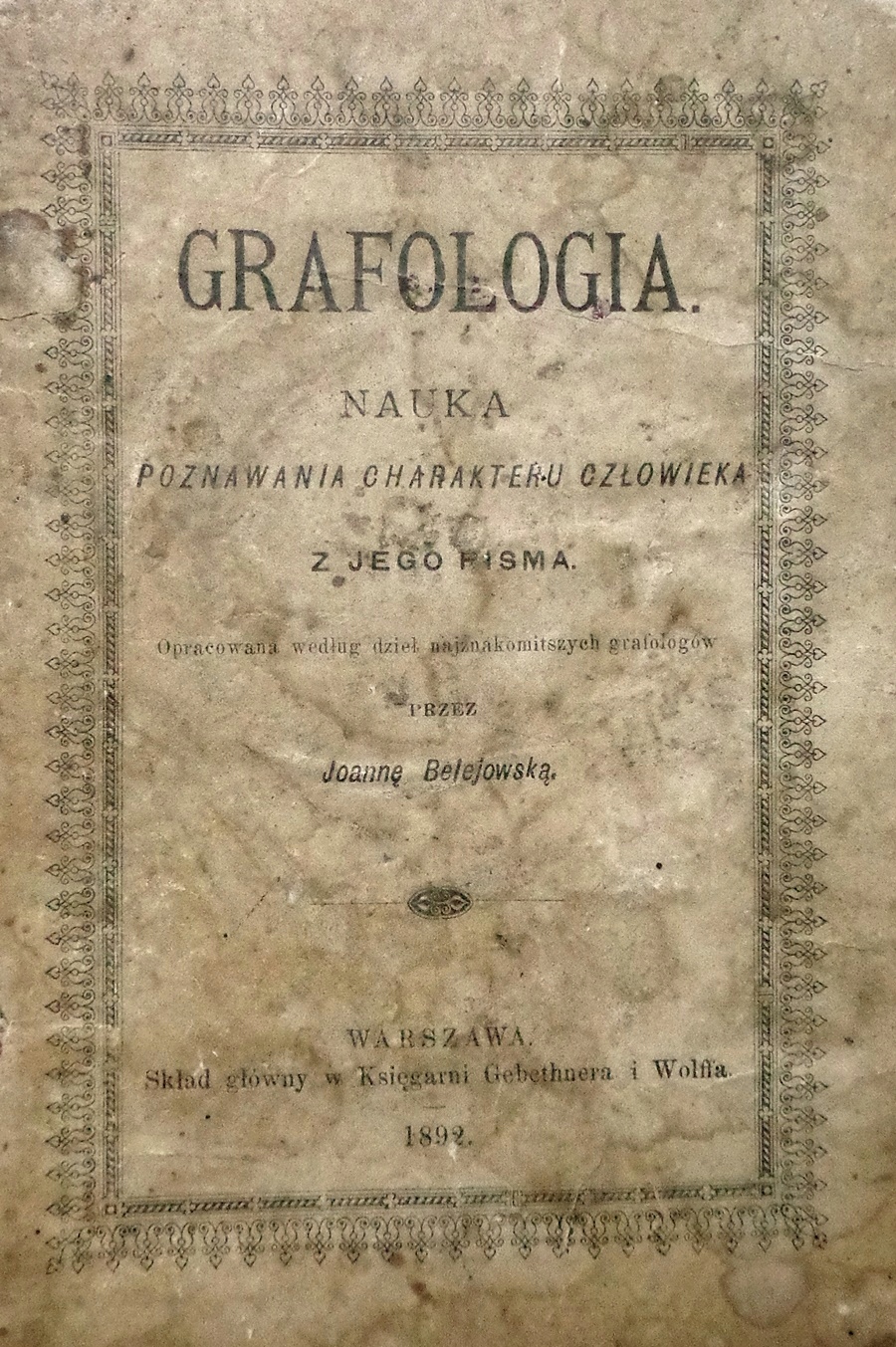 GRAFOLOGIA - Belejowska 1892r