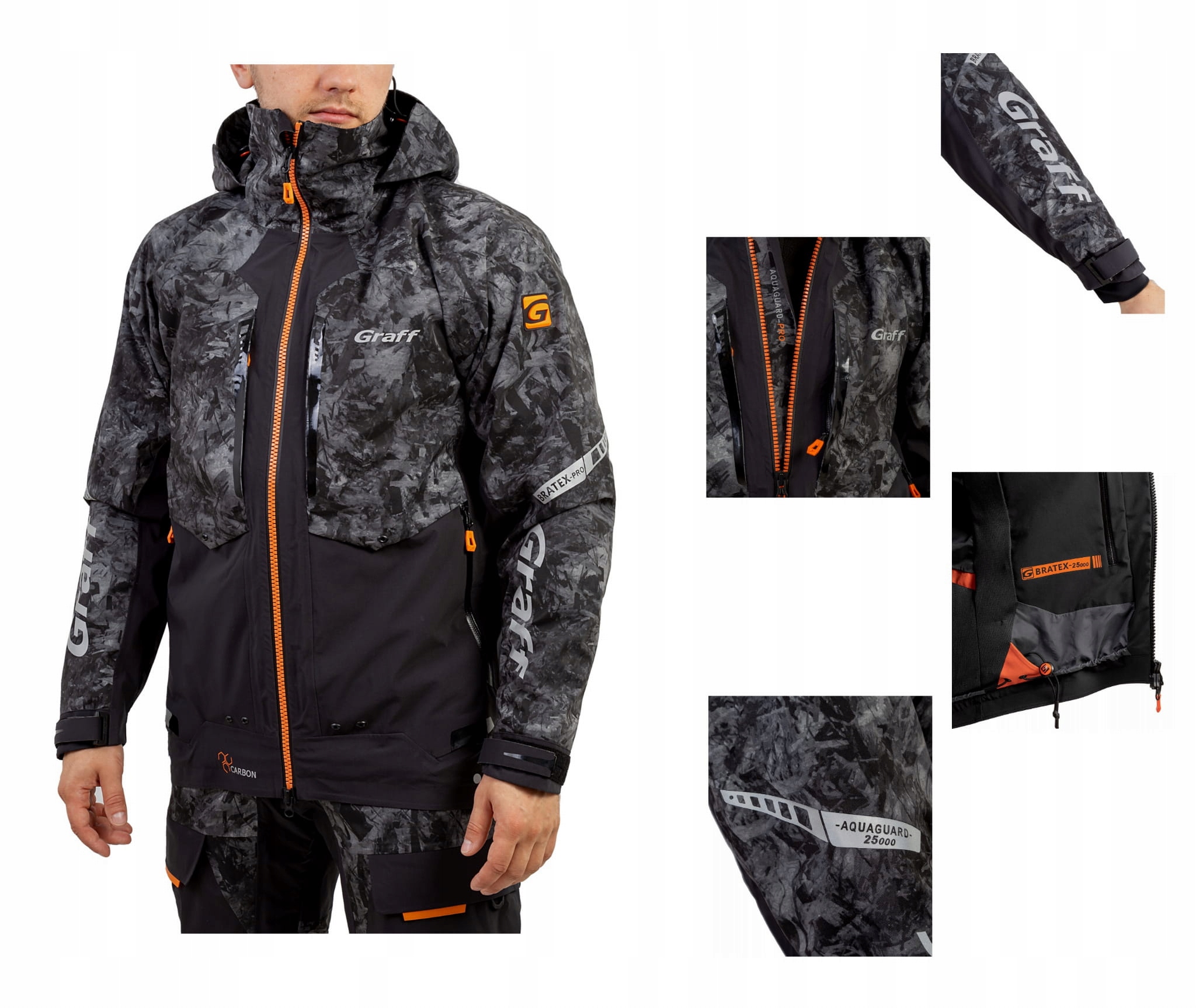 Завдяки використанню 3 -шарової мембрани Bratex® з водонепроникними параметрами та диханням 25000 мм H2O/20 000 г/м2/24 год, набір стає відмінним захистом від дощу та вітру. Спеціально розвинене покриття Teflon® означає, що вода вільно тече з поверхні тканини, а бруд менше прилипає до неї, полегшуючи очищення. Крім того, набір був збагачений захистом від УФ -променів, захищаючи від вицвітання та згасання матеріалу. Для підвищення ефективності в куртках та штанах було використано верхні замки поважної серії VISLON® Aquaguard®.