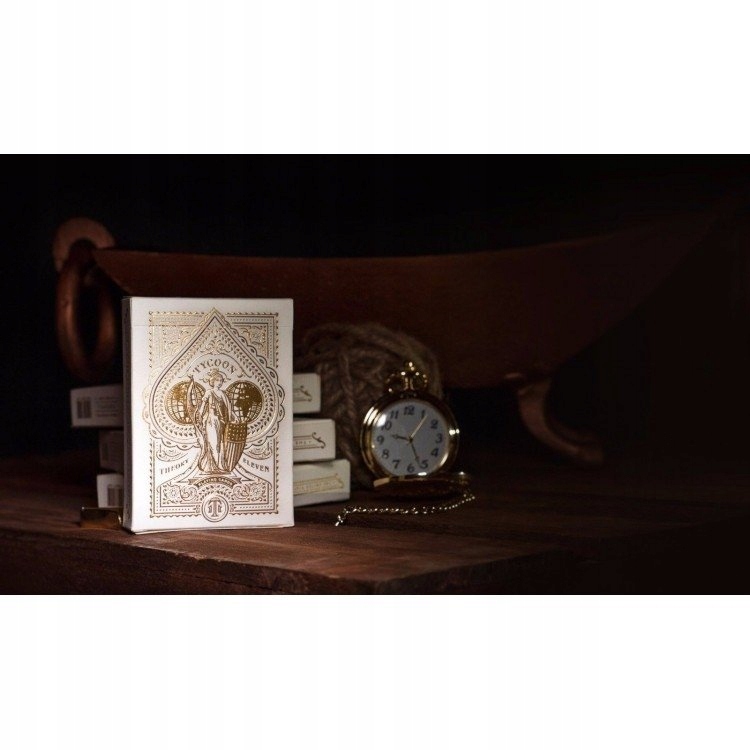 Високоякісні дизайнерські гральні карти, виготовлені у співпраці зі Стівом Коеном, «Чарівником мільйонерів», зіркою Chamber Magic®, головного шоу в престижному готелі Waldorf Astoria у Нью-Йорку. Waldorf Astoria є легендарним місцем зустрічі королівських осіб і надбагатих людей. На це нове видання не пошкодували коштів. Ivory Edition Tycoons розміщено в білому високоякісному футлярі, покритому золотою фольгою. Дизайн зворотної сторони картки надруковано ефектним золотим металевим чорнилом.