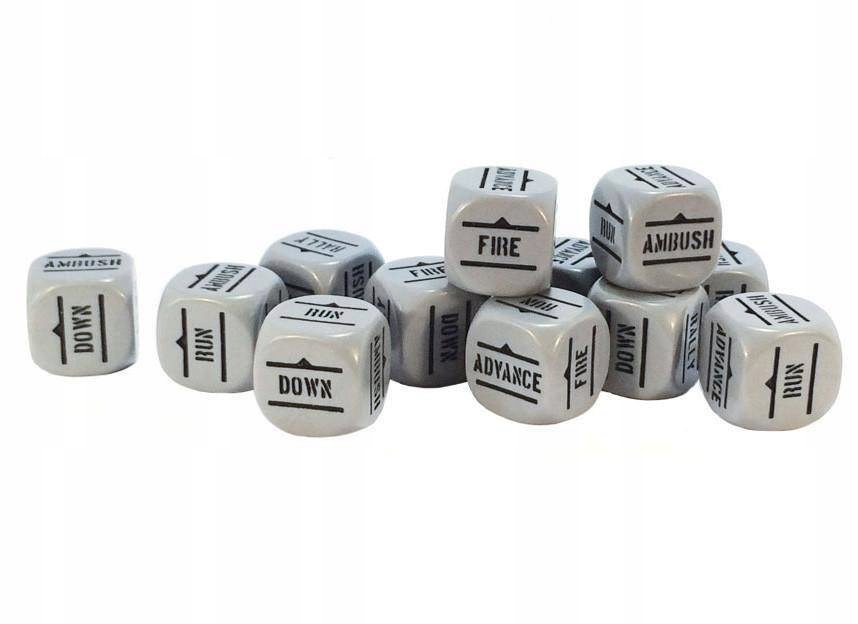 - 12x шість- гральні кубики з порядковими символами Bolt Action
