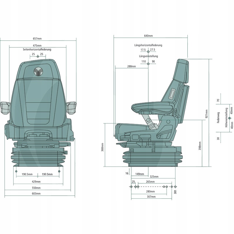 Технічні дані :: • Пневматичне підвісне демпія 12 ВС. мм • Налаштування навантаження, електрична 50-130 кг • мішок для зберігання • APS (система автоматичного розташування) • Правий підлокітник з регулюванням нахилу 80 х 380 мм • Регулювання діапазону обертового адаптера 15 ° • Налаштування висоти висоти 80 мм (пневматичний) активна система кондиціонування • 2-ступінчасте опитування сидіння, що переживає блокуване ворсинг, блокувальне блокувальне блокувальне блокувальне бік Поздовжнє горизонтальне поглинання амортизації можливе • Пневматична 2-позиційна підтримка поперекового відділу хребта • Регулювання спинки та схильності • Налаштування контуру подвійного моменту • Налаштування подушки для спинного тесту. Консоль використовується для встановлення наявних підлокітників управління на нових сидіннях і вже заздалегідь зібрано. На фотографіях видно підлокітник, який відповідає цьому сидінню, але воно не включається і призначений лише для ідентифікаційних цілей.