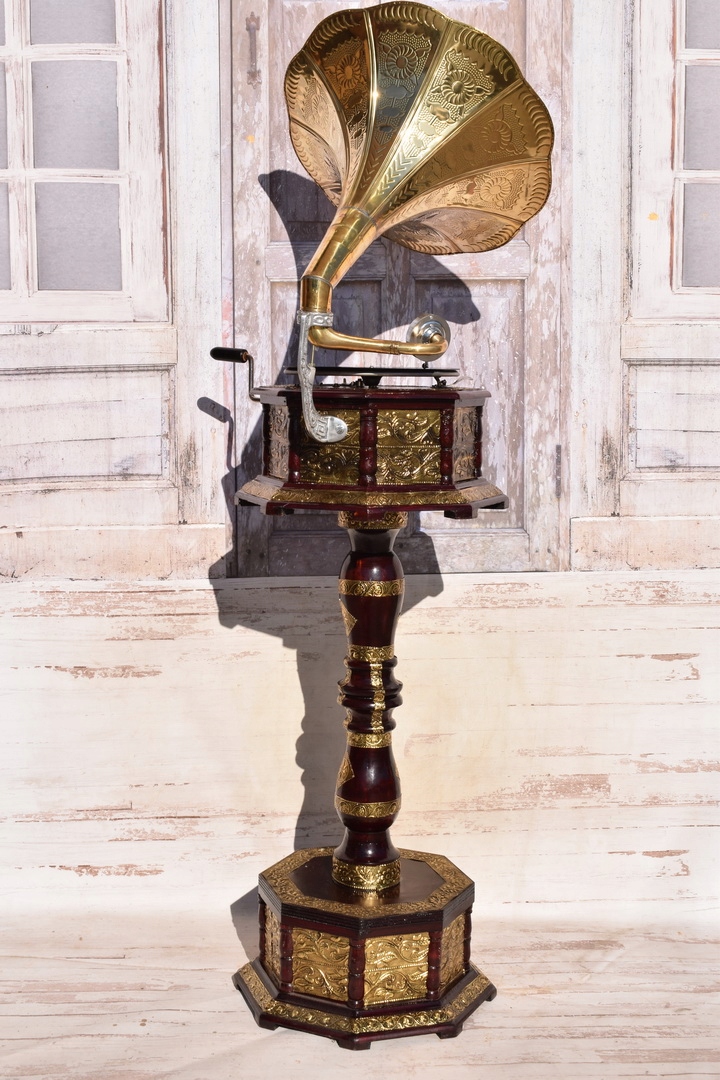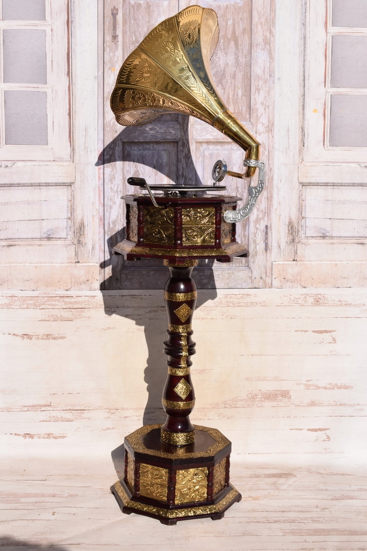 Gramofon 8 Kąt - Rzeźbiony - Patefon - Stojak - Tuba - Sprawny